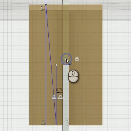 With your leg profile finished on one side, you can avoid drawing it again on the other side by mirroring it. To mirror, you'll need a centerline. Go to SKETCH > Line and draw a line down the center of the leg profile. You'll see a triangle symbol when you're snapping to the center of the top line. It's important that this line is vertical and centered on the drawing.
