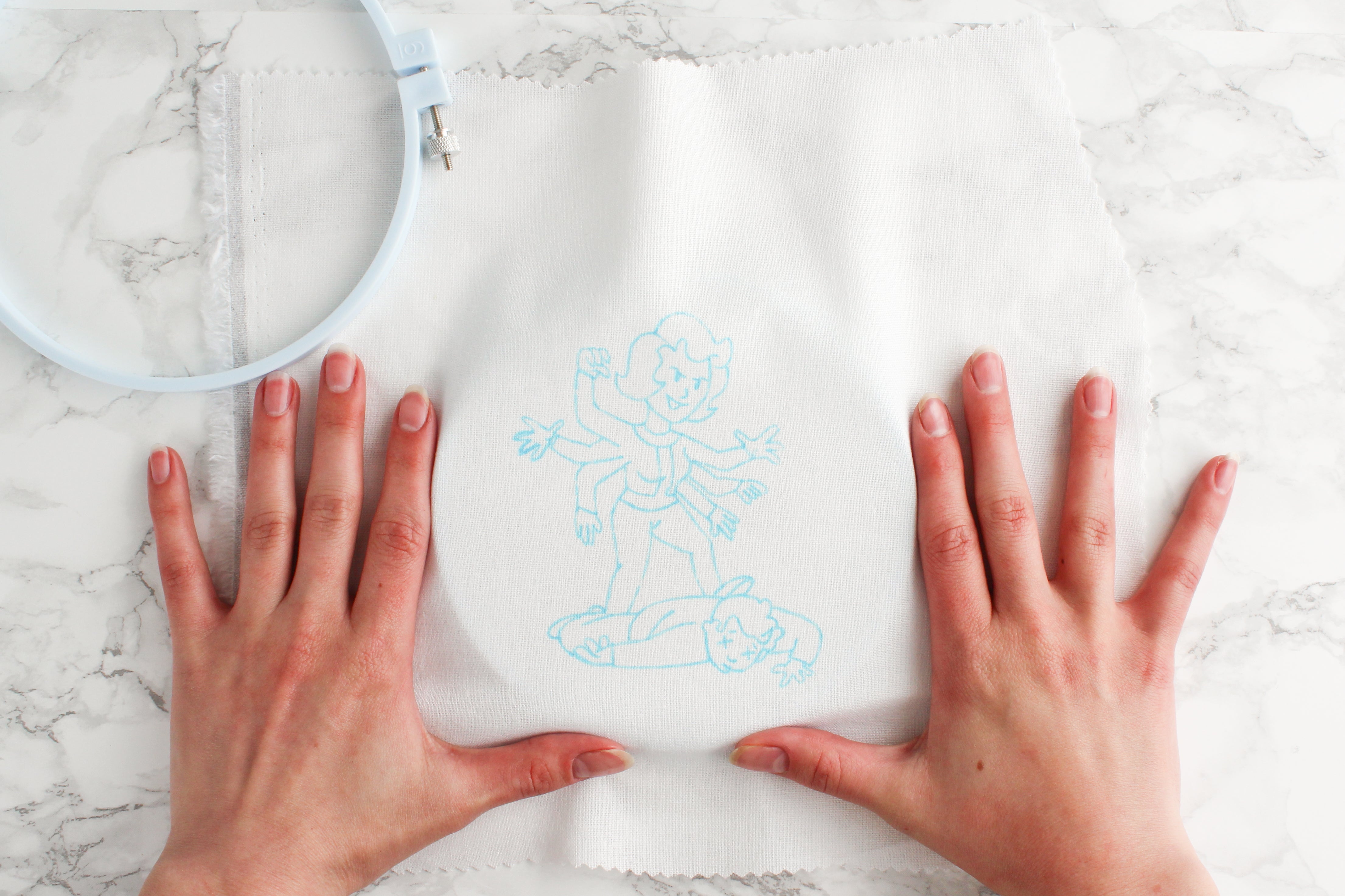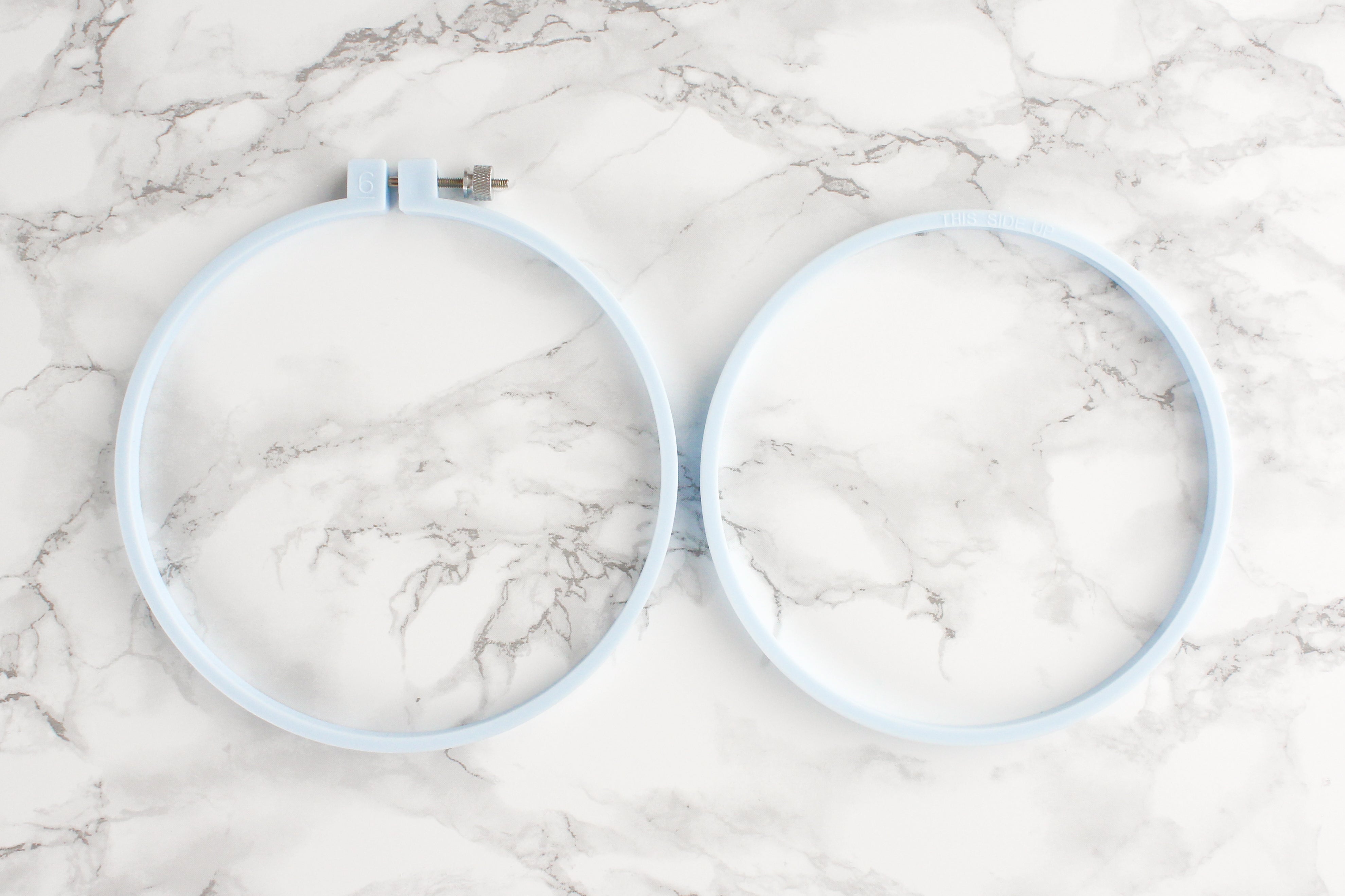 To figure out what size hoop to use, place your printed pattern down on a flat surface and lay the inner ring of a hoop over it. If the pattern fits neatly inside, you're good to go! If the pattern is super close to the edges, you may want to go up a size.