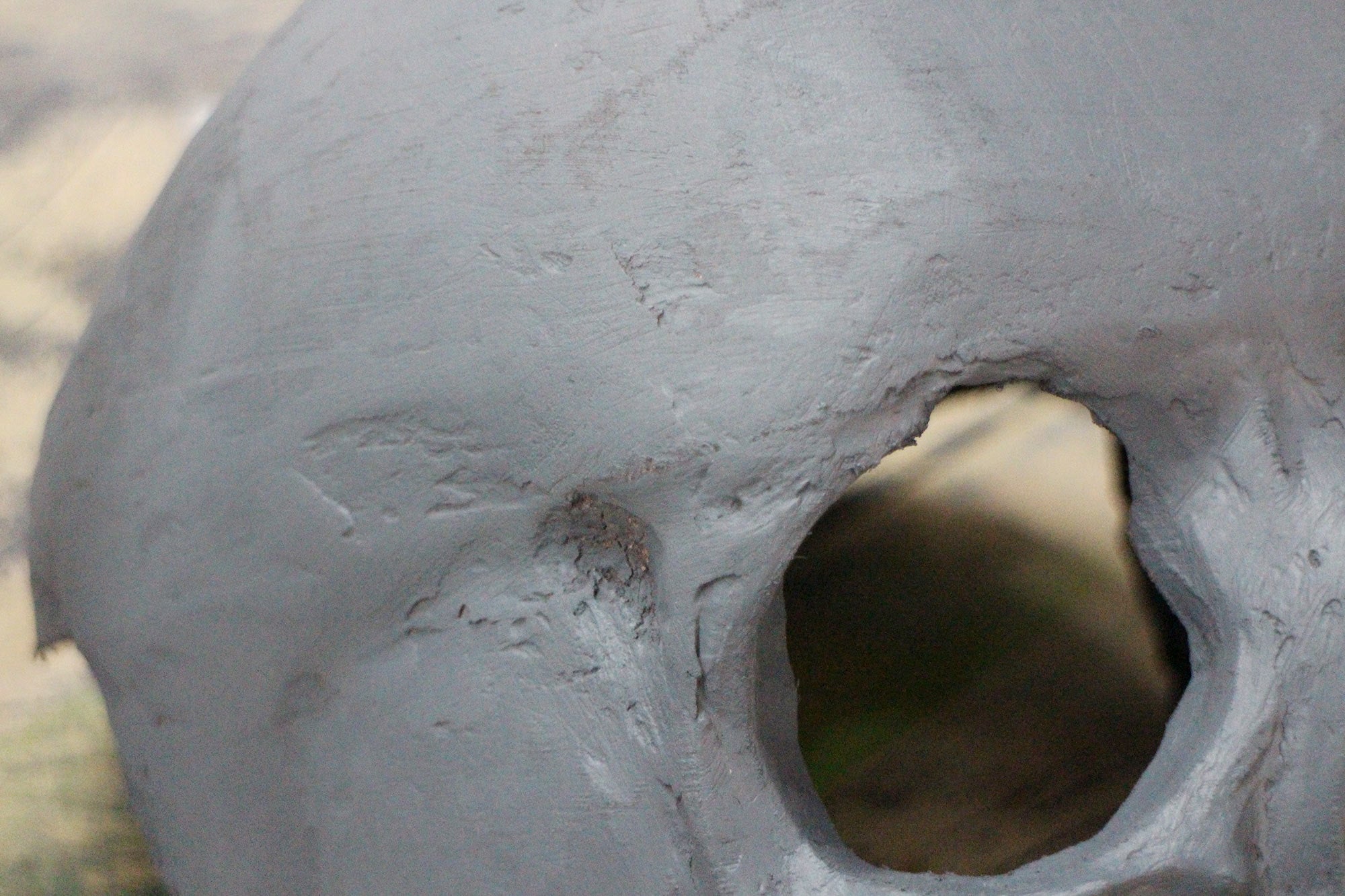 Grey primer was applied to the skull in 2 coats, waiting about 20 minutes between applications. After priming has turned the surface a uniform color any large imperfections will be easier to spot.