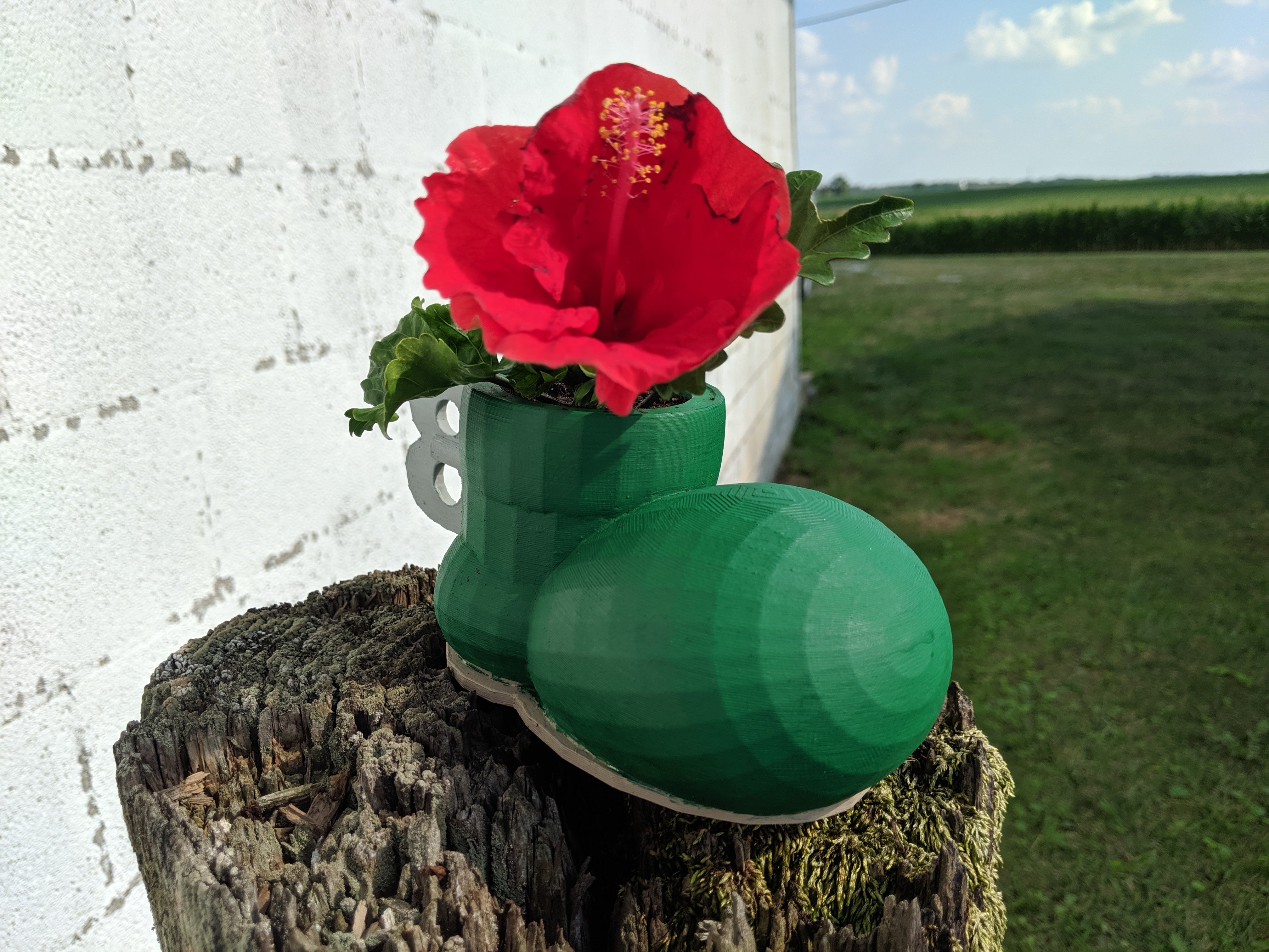 My wife is the gardener in the family, when Spring roles around she plants a garden of vegetables and pots flowers to put around our house. I've never really participated in this seasonal activity other than occasionally watering the plants or helping to move pots to and fro. Gardening just has never been my thing. This year I thought maybe if I had a cool, unique pot I could have some fun growing my own plant. With that thought and in the spirit of trying new things I give you the Goomba's Shoe Planter.