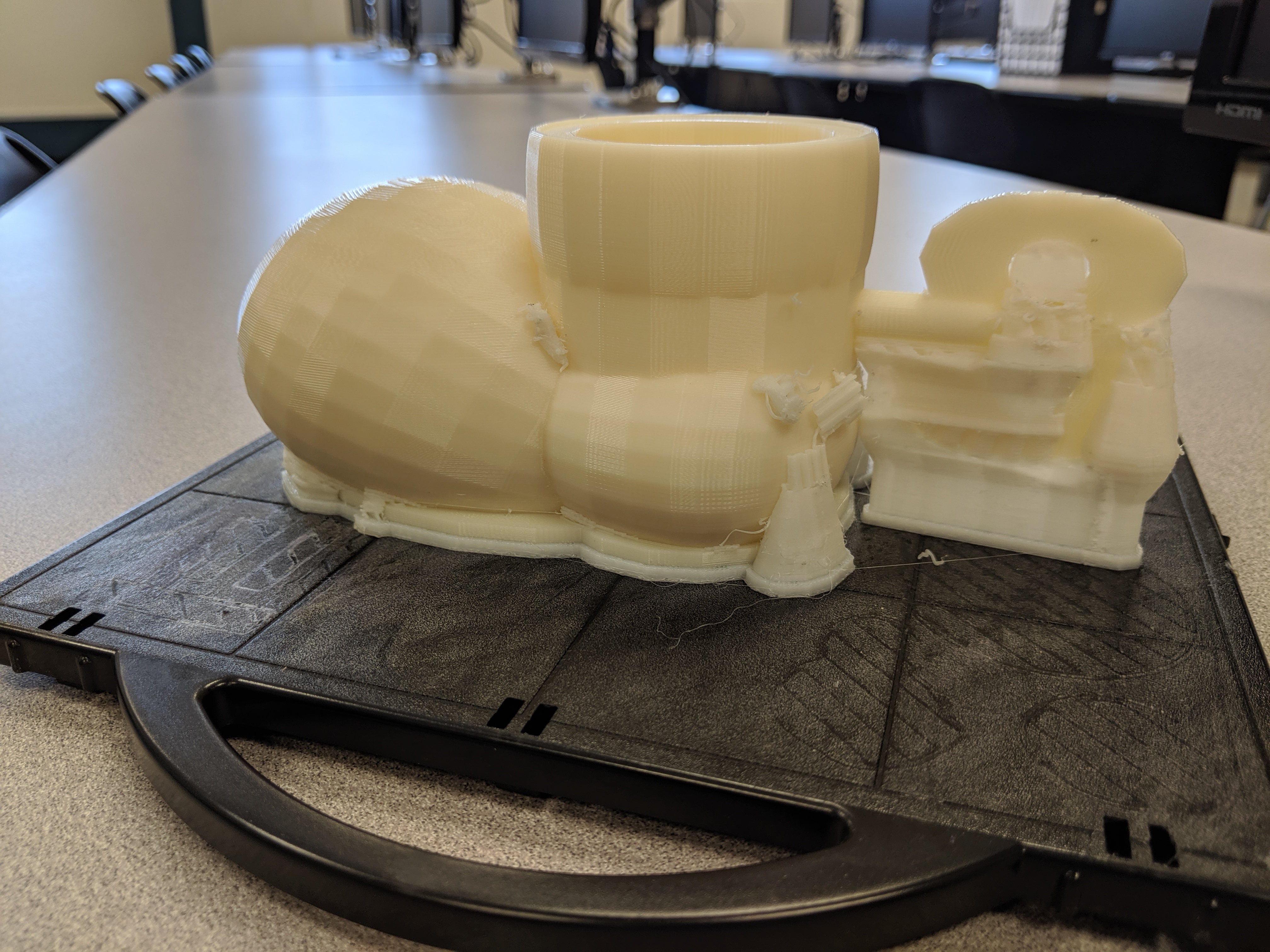 Finished with the 3D model, time to make it real. Using the export option I downloaded my model in STL format and sent it to my 3D printer. A little over 10 hours later and I had my Goomba Shoe in hand.