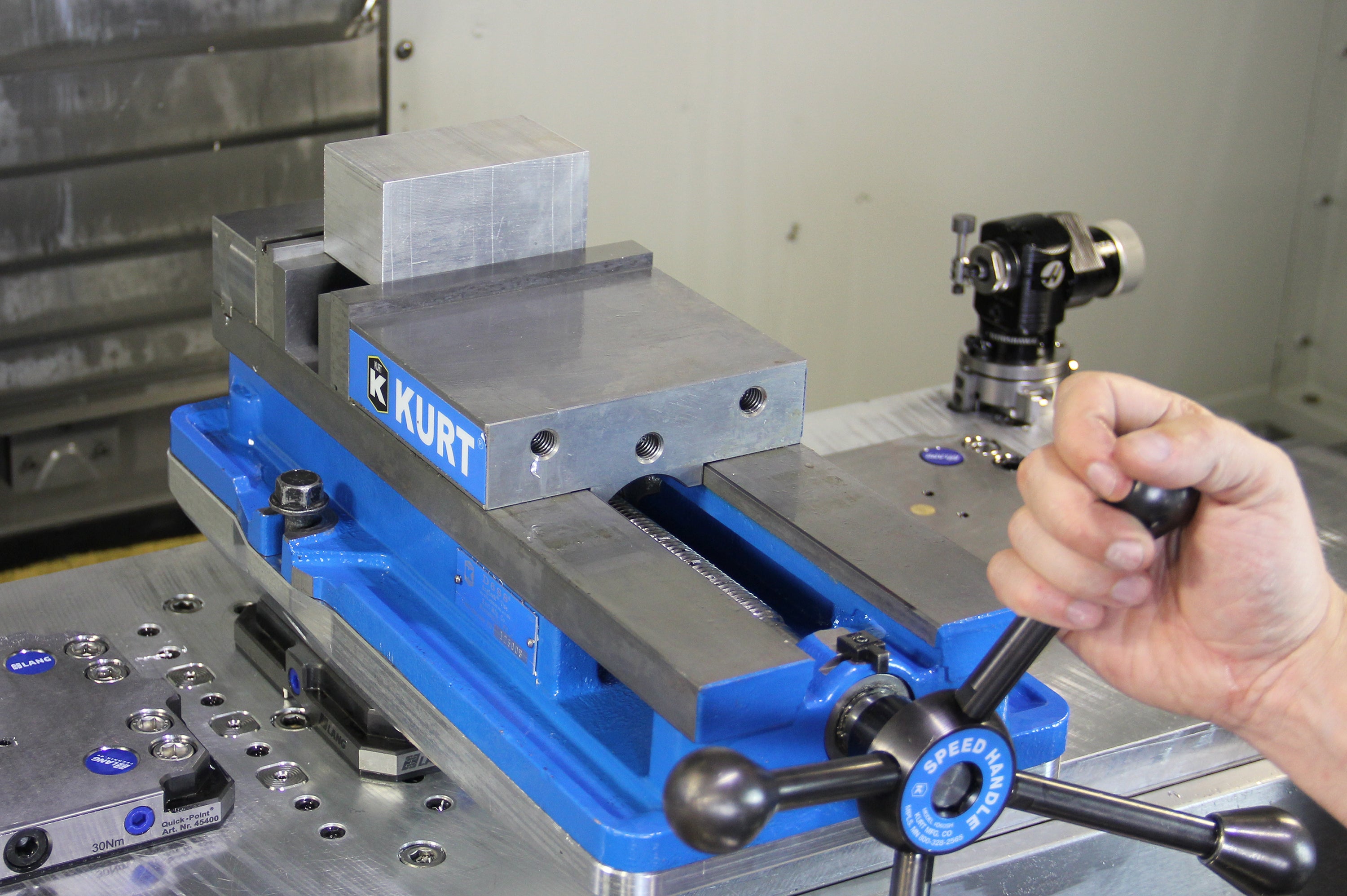 Tighten with Kurt vise handle.
