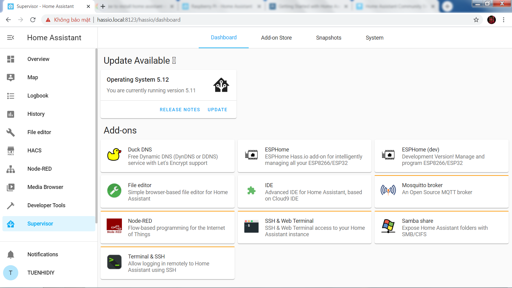 - Home Assistant Community Store (HACS): This is an extension that makes it easy to install custom components and themes for Home Assistant. I followed this article and installed HACS successfully on my Raspberry Pi.