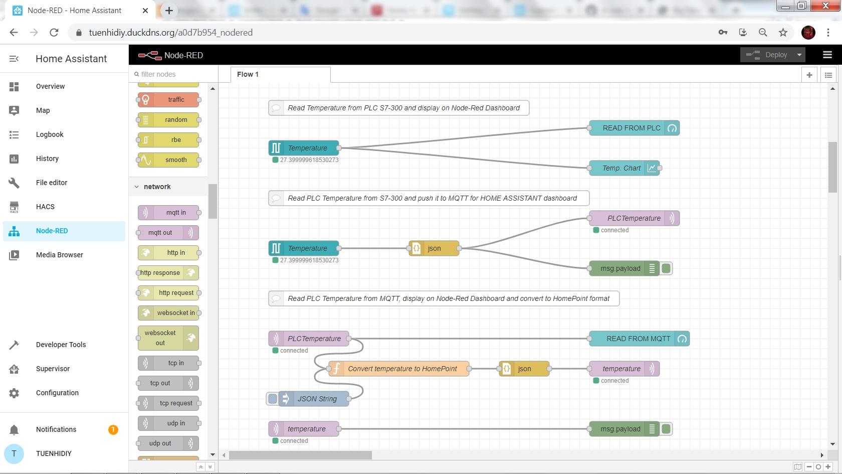 Node-RED, HACS & PLC S7-300