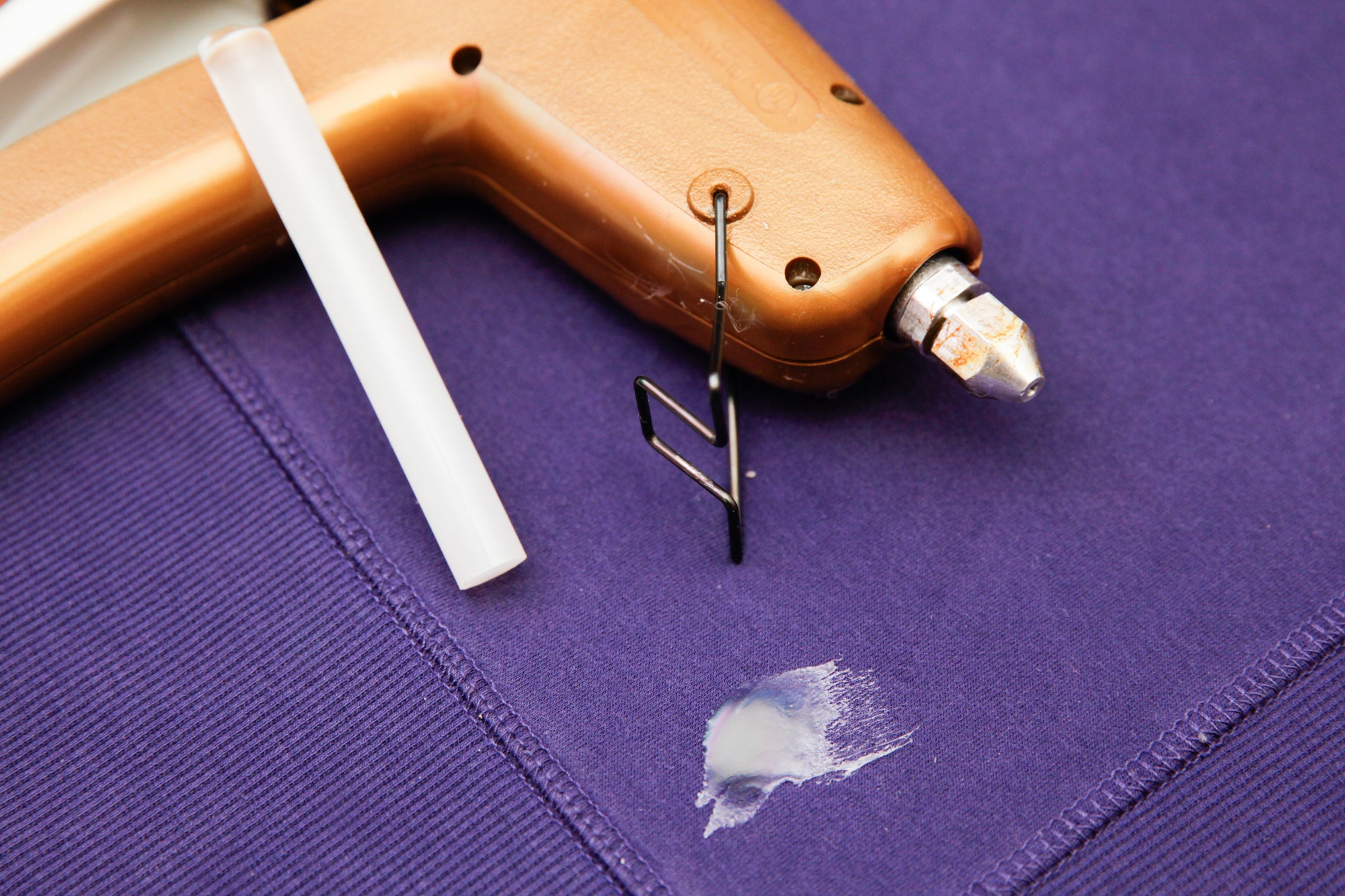 If, however, you make an error with a porous material like fine fabric, you will need to reheat the glue to remedy the problem.