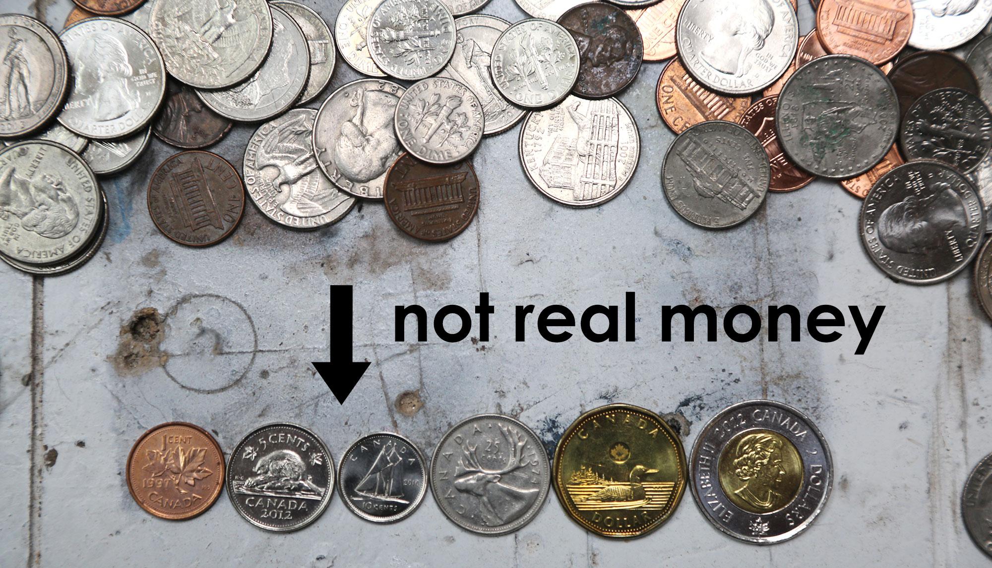 I can't use this currency where I live, so I can't count it towards organizing my finances. Besides, this foreign money looks very suspicious. You've got to be Loonie to think this is real money. I'm not counting it.