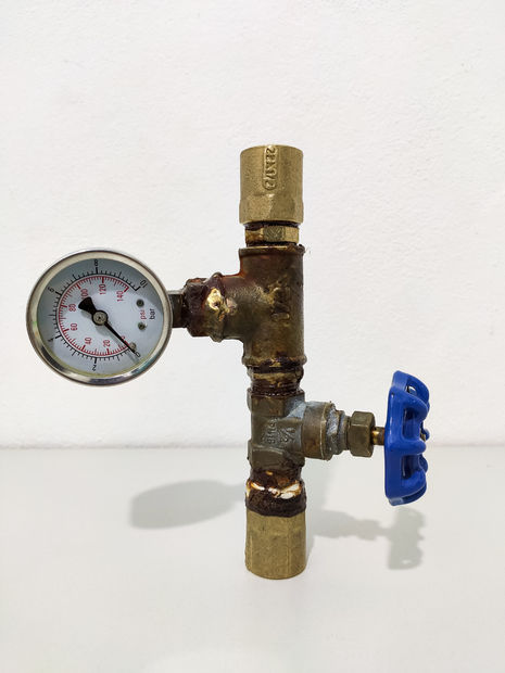Let's start accomplishing the pressure gauge in the ½ drawer register, to make that you will need three pipe nipples, two Female Connector Copper 22 x 1/2 and a T pipe. The structure should look like the image below. You should also use some kind of Joint Sealant Engine and Teflon ribbon to glue the connections.