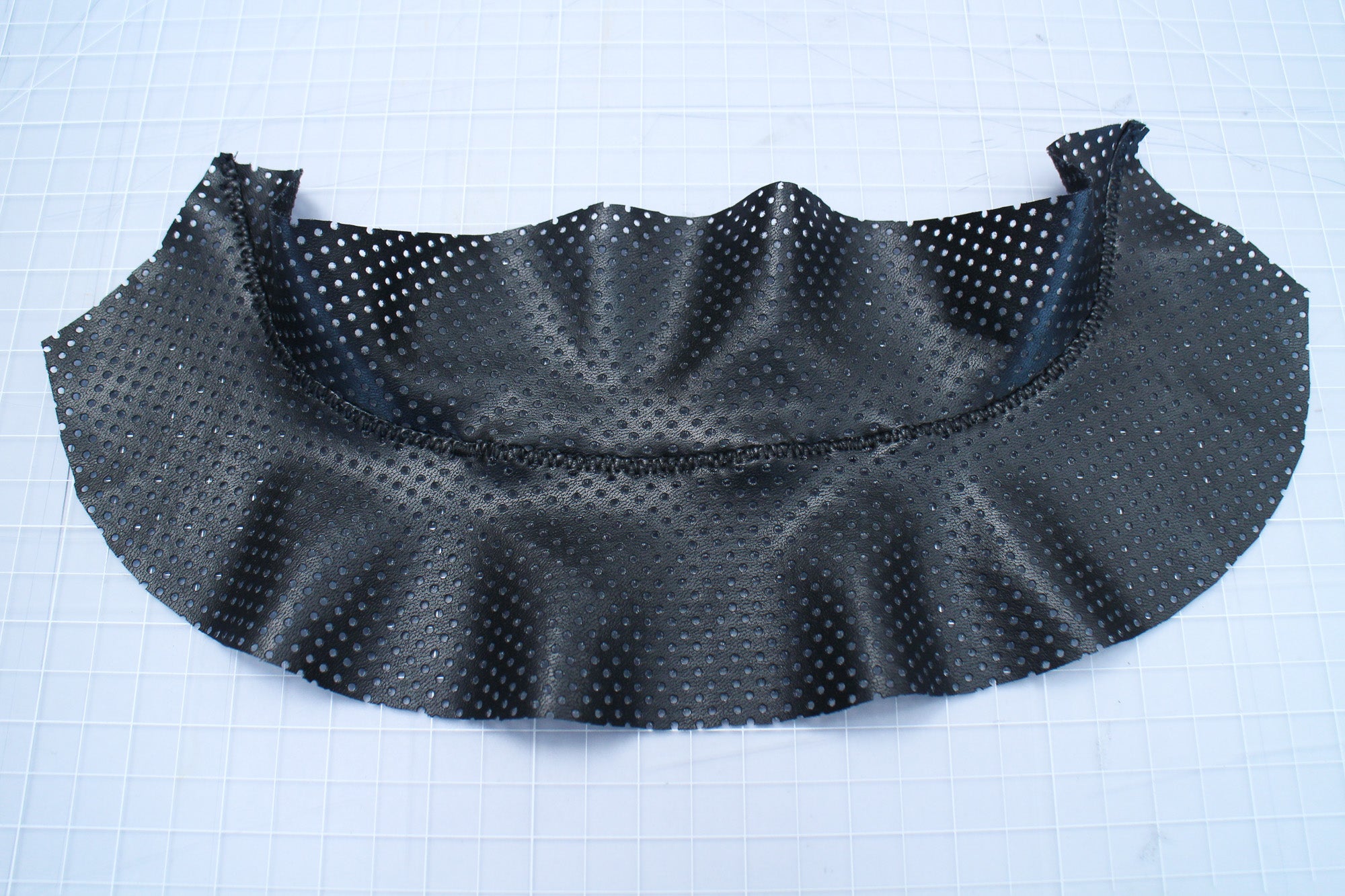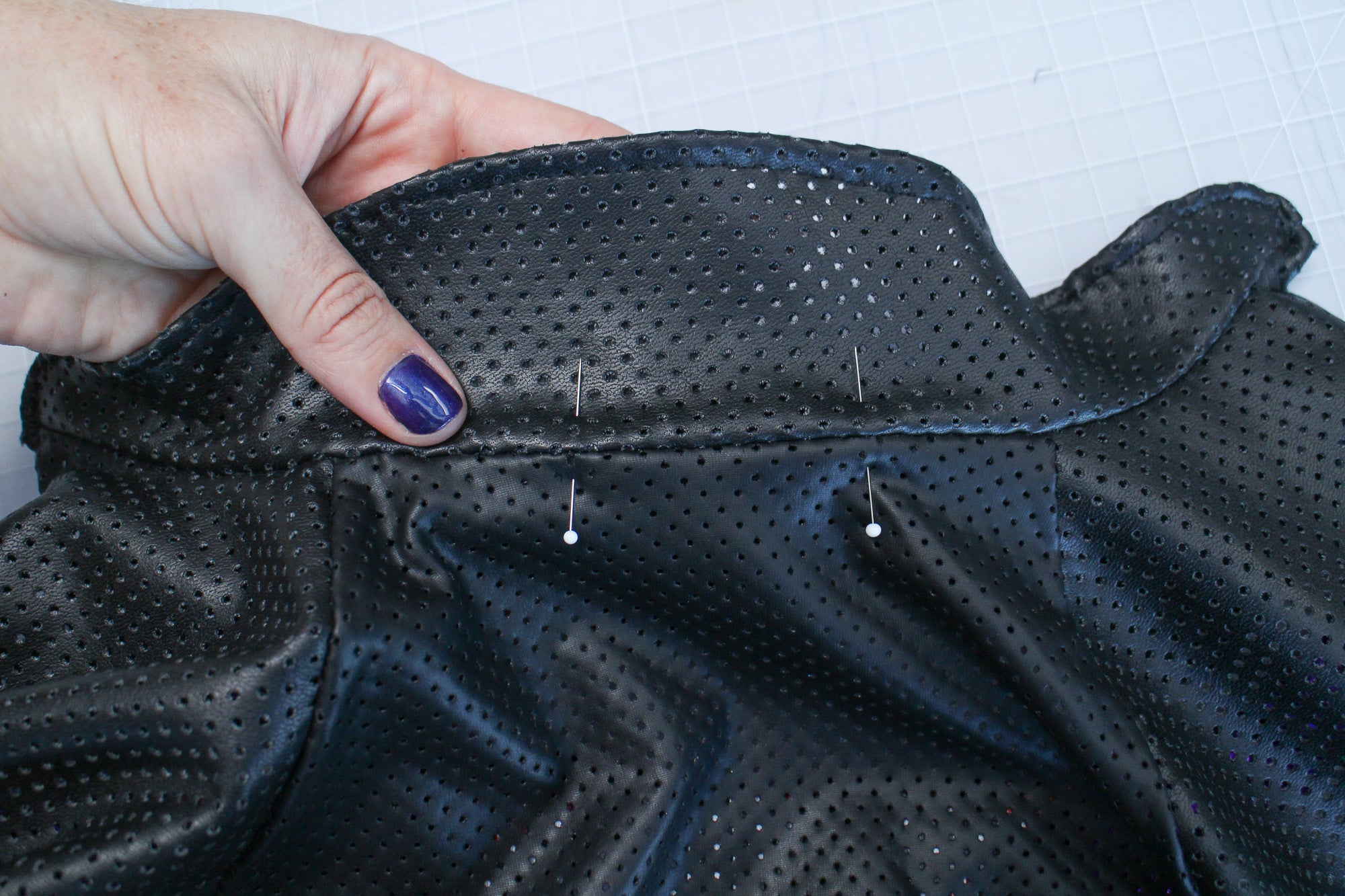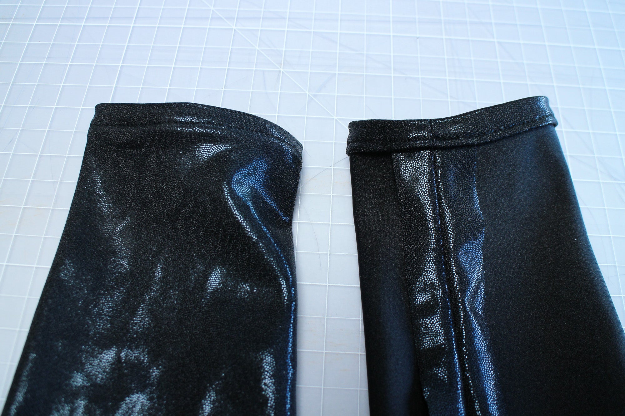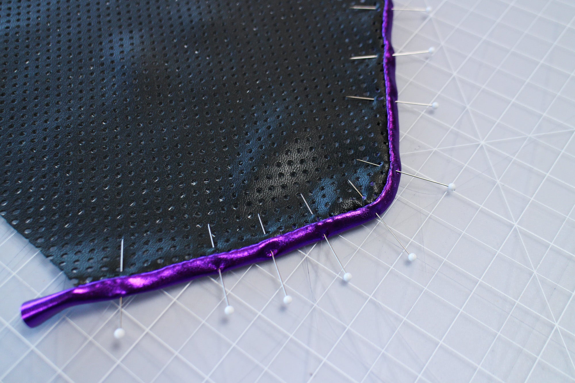 My black perforated spandex is somewhat sheer, and in some areas, like the waist and butt, I wanted to line it. To do this I simply lay the self on top of the identical lining piece, pinned them together, then sewed in the doubled panel as if it was one piece.