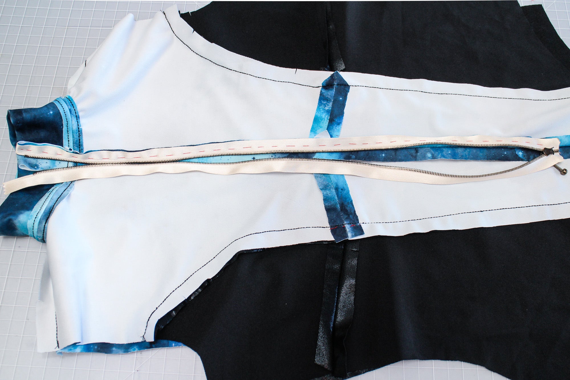 While I generally think zippers in spandex bodysuits are best avoided, sometimes your design will just require one. When you have to set in a zipper there are a few different kinds you can use. I think a standard zipper inserted railroad style, is one of the best and easiest options, and an invisible zipper is fairly simple too.