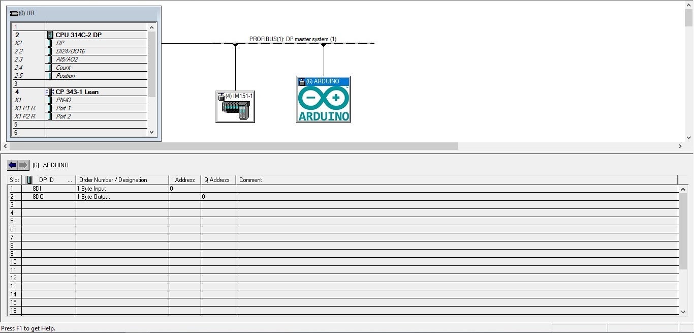 In Simatic Step 7 program (HW CONFIG), we have to install ARDUINO *.GSD file and update your Hardware Catalog using the menu command "Options --> Update catalog". You can check detail at this link to know how to integrate a GSD file into the STEP 7 HW Config for PROFIBUS.