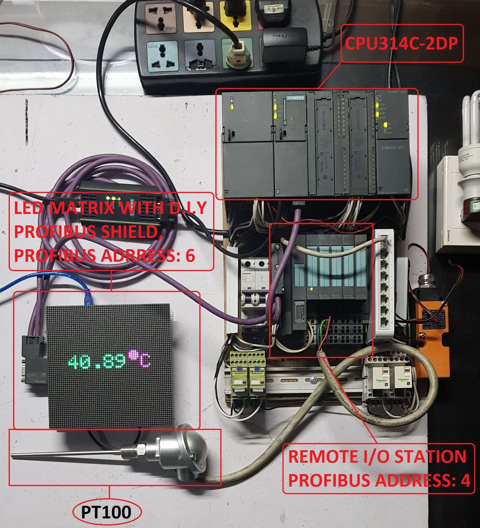 - PLC read the temperature from Remote I/O station Profibus Address 6 and then send this value to led matrix module (Profibus Address - 6).