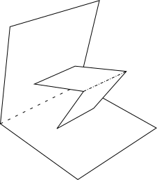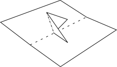 The 'energy' which opens the shapes comes from the folds. When a structure is added to a fold, new folds are introduced. These folds can again act as the 'energy' to pop-up other structures. Two types of structures can be distinguished, a structure created by a fold which crosses the base fold (v-fold) and structures created by a parallel fold. By smart combinations of both types of fold, folds in any direction in the 3D space can be created at any location you desire.