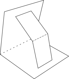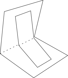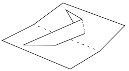 To make something stand upright when the base fold is folded open, one can use this fold. The fold consist of a piece of paper added to the base fold and a 45 degree v-fold. The 45 degree v-fold is a symmetric v-fold, when folded open, spans 90 degree. Connect the piece of paper in the base fold using the 45 degree v-folds between both sided of the inserted paper and the base. Now, when you open the base fold, the piece of paper should stand upright.
