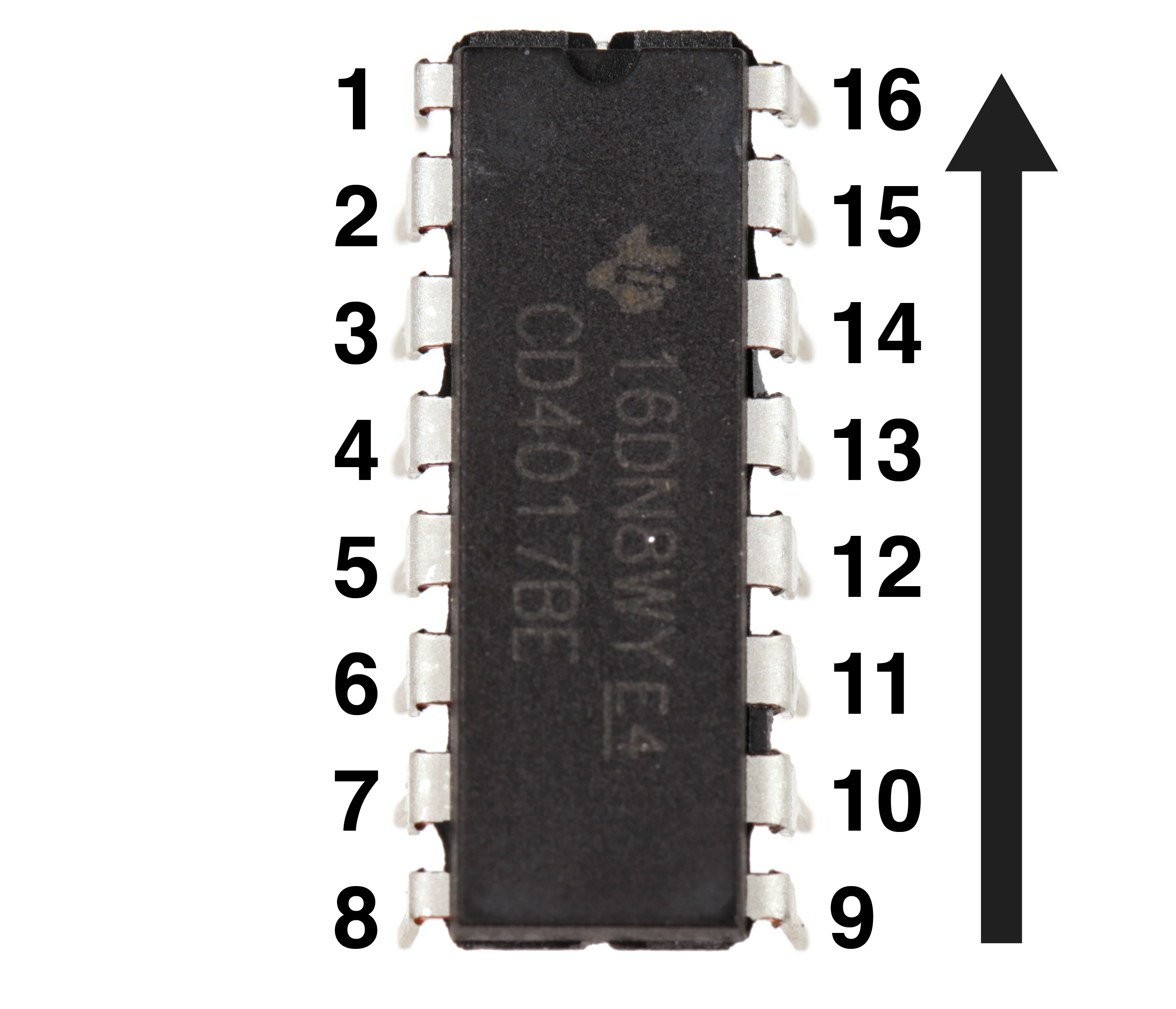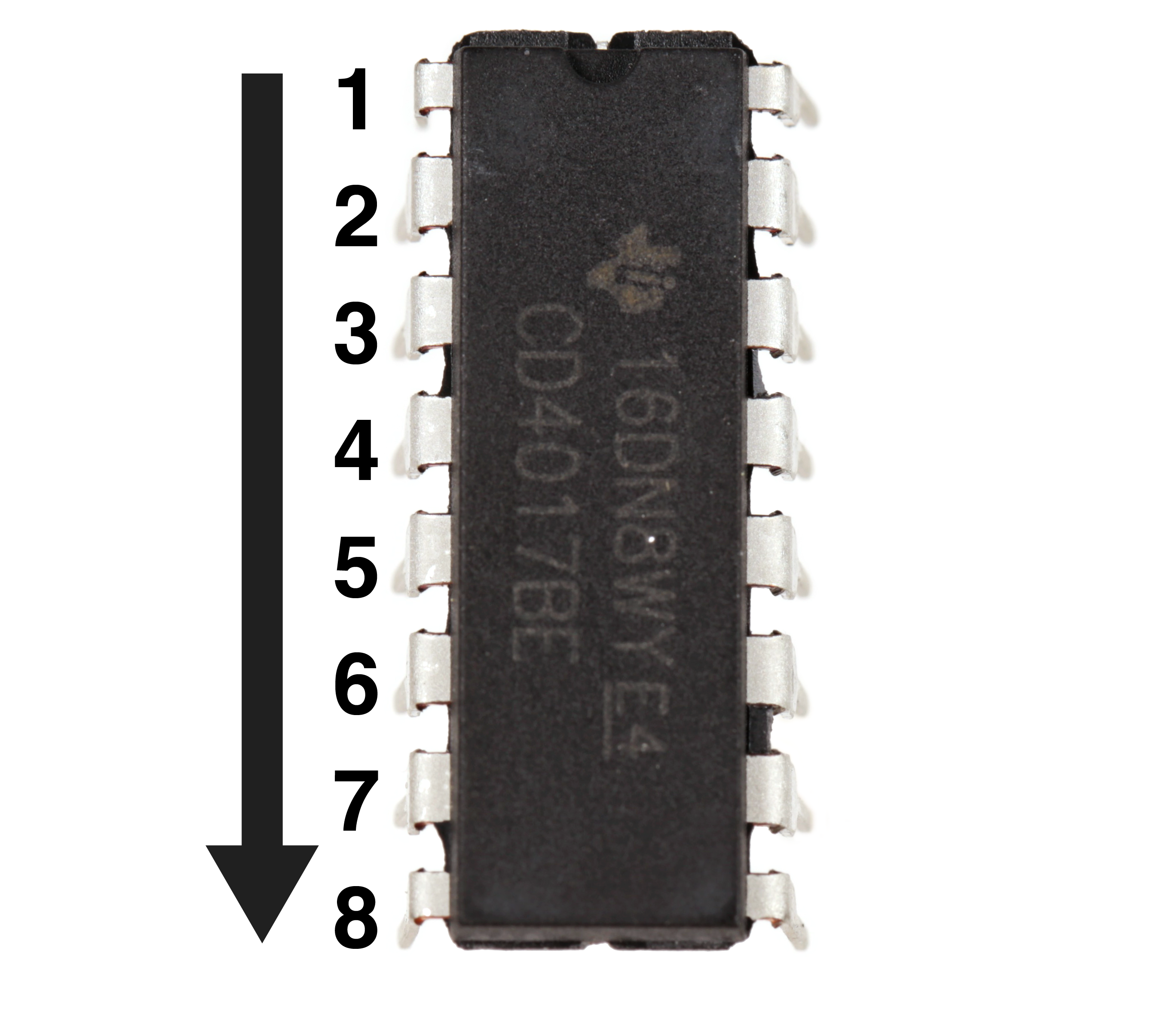 Now, if you were to look at the furthest pin on the top left, that is pin 1. The pin numbers increase sequentially down the left side until you reach the end.