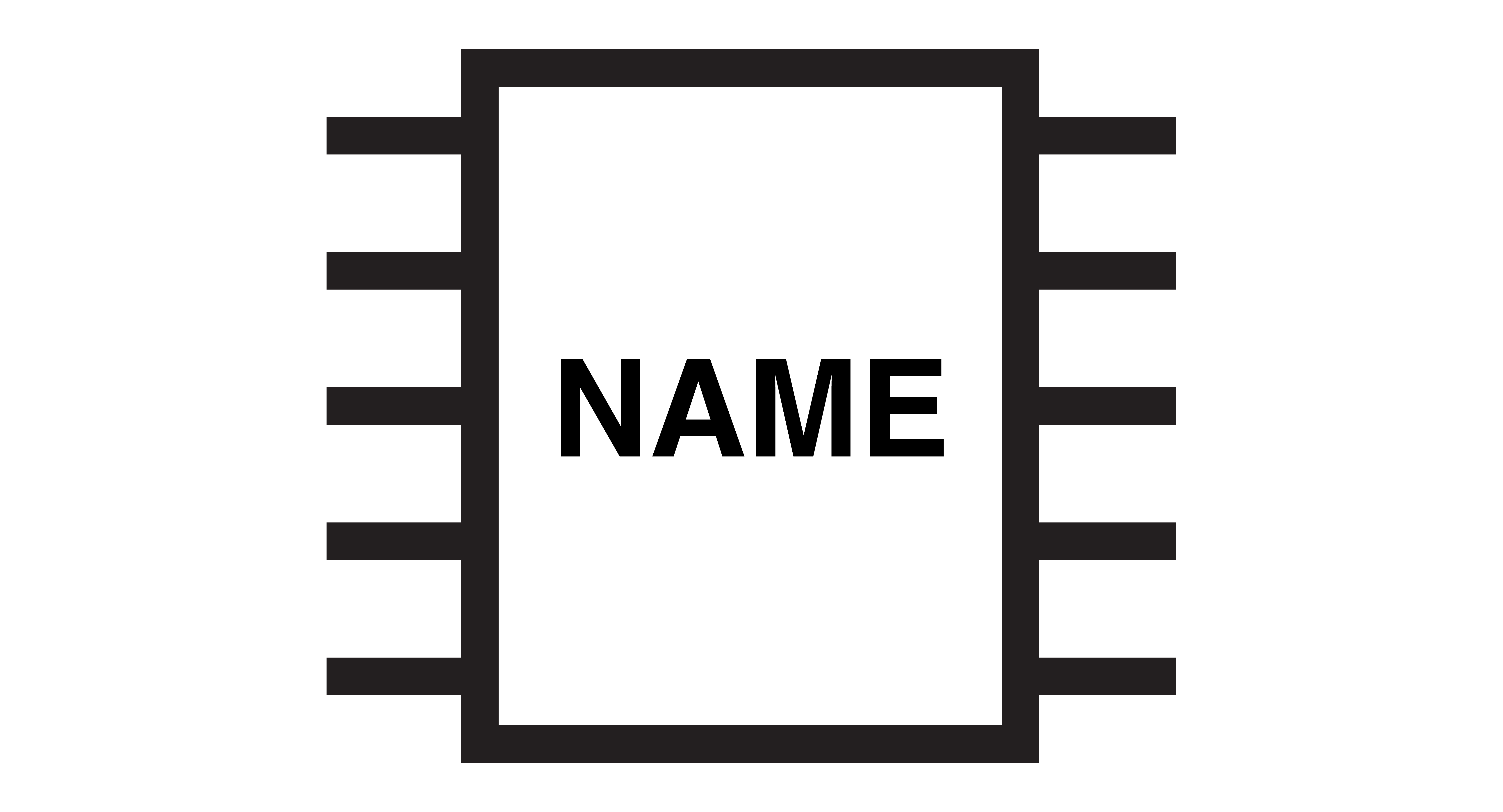 In a schematic, an integrated circuit looks like a box with lines protruding from it. The box is typically labeled with the name of the chip. The pins will usually be labeled with their number. If not, assume the one on the top left is pin 1, and read it like you would any other integrated circuit (which will be covered shortly).