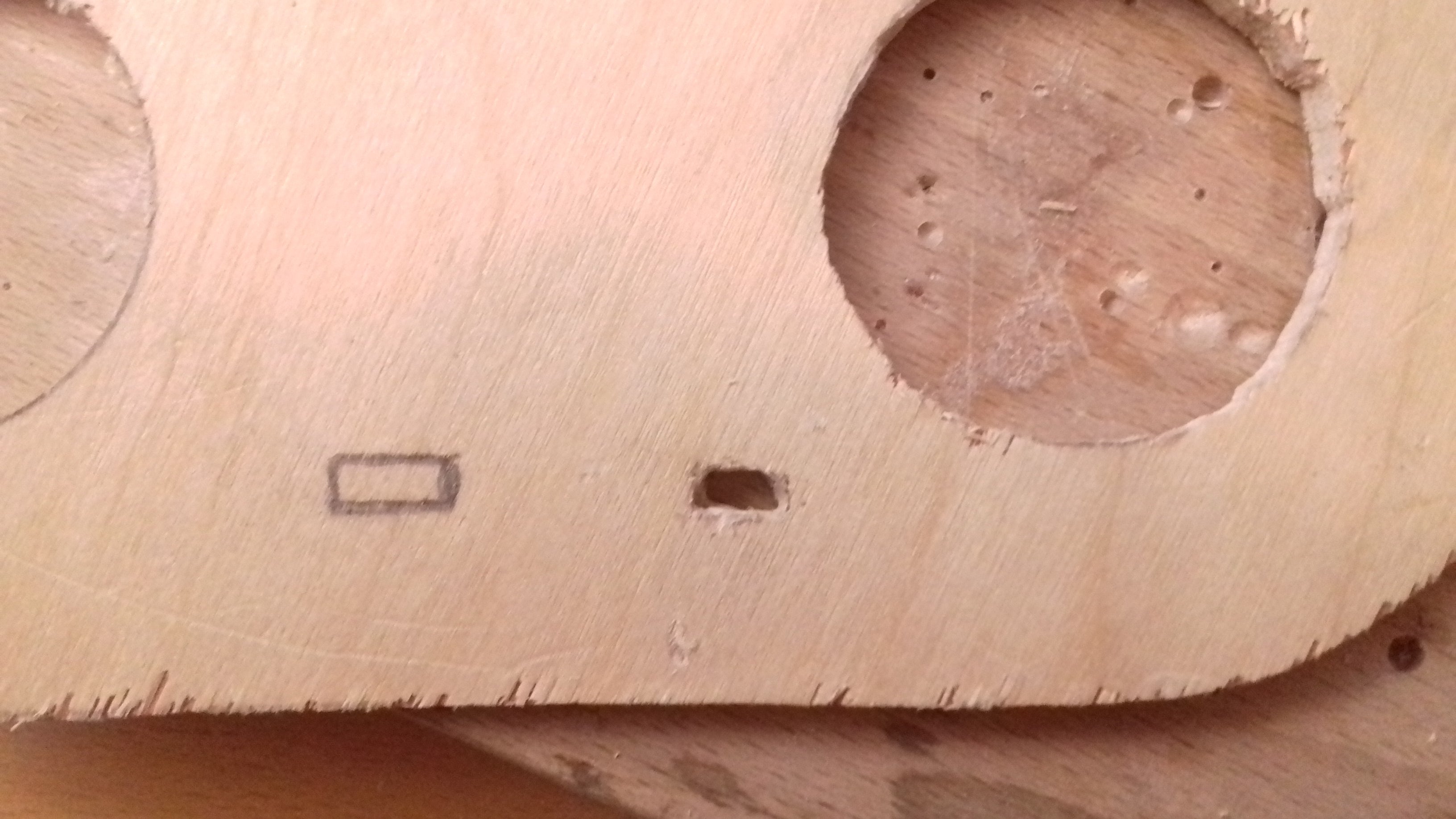 What I did is, I returned the template and draw a little micro-USB port and place where the switch would be. Afterwards, using drawing compass, mark the edges on each point, so that you can easily transfer it onto plywood.