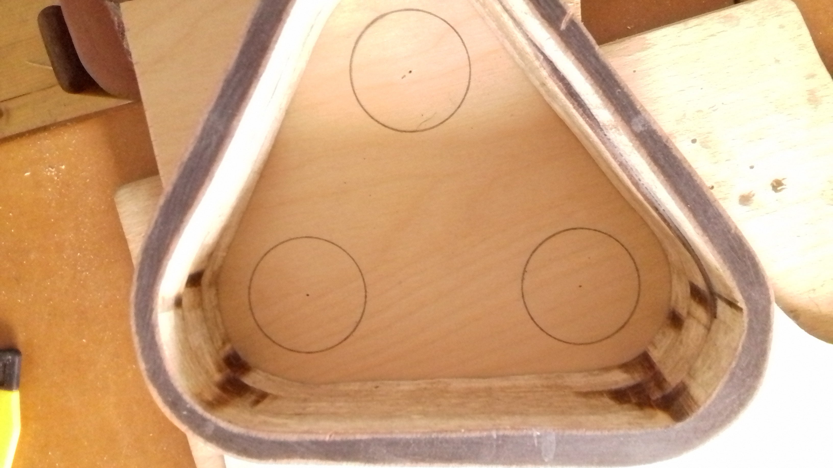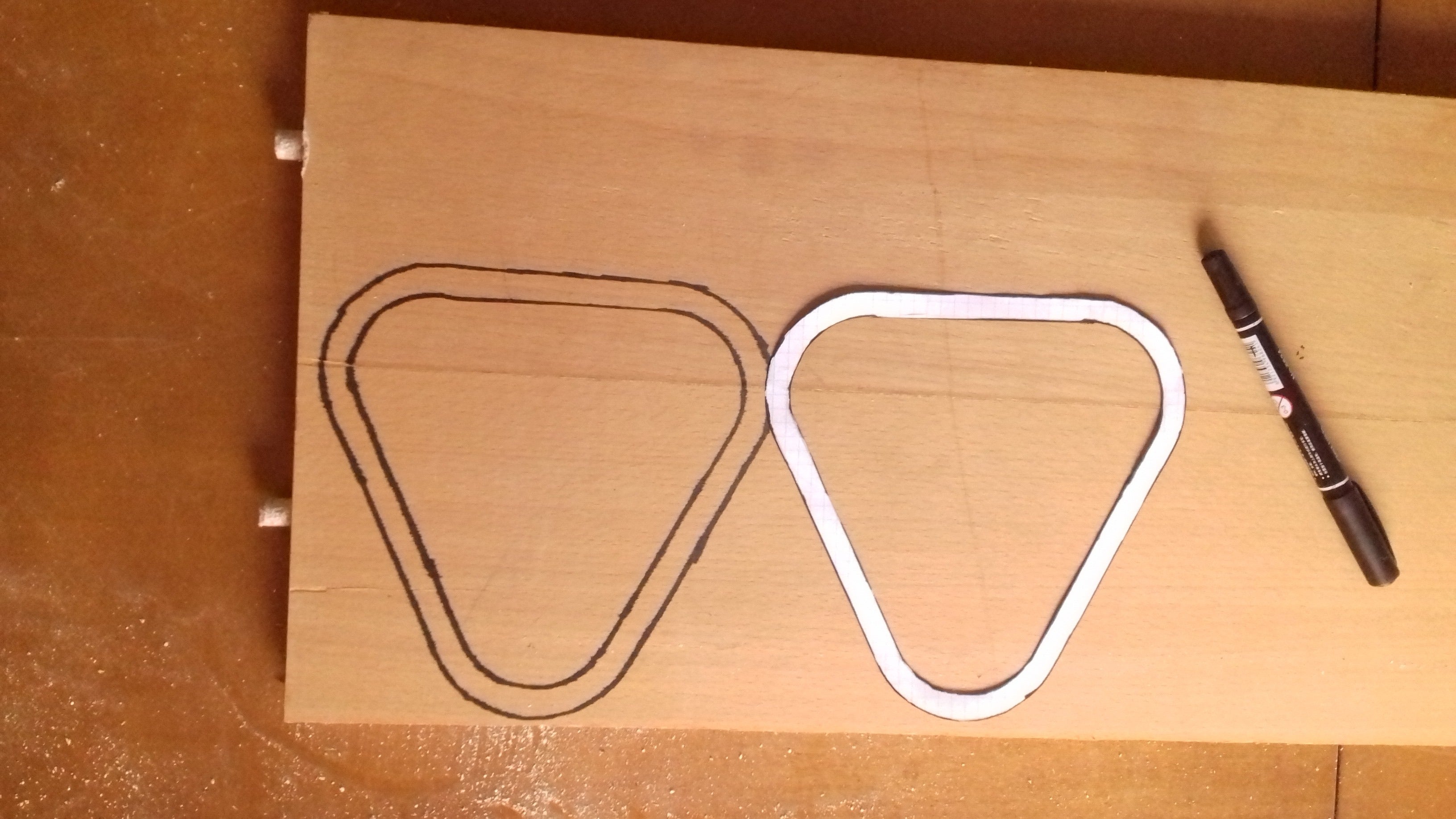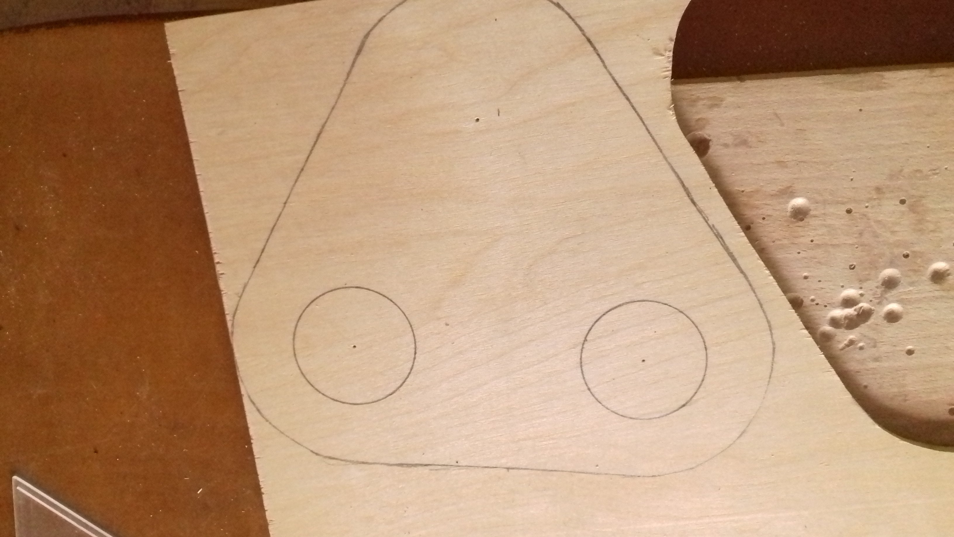 Using this pdf template of the sides, I transferred it to plywood and drew where I need to cut it.