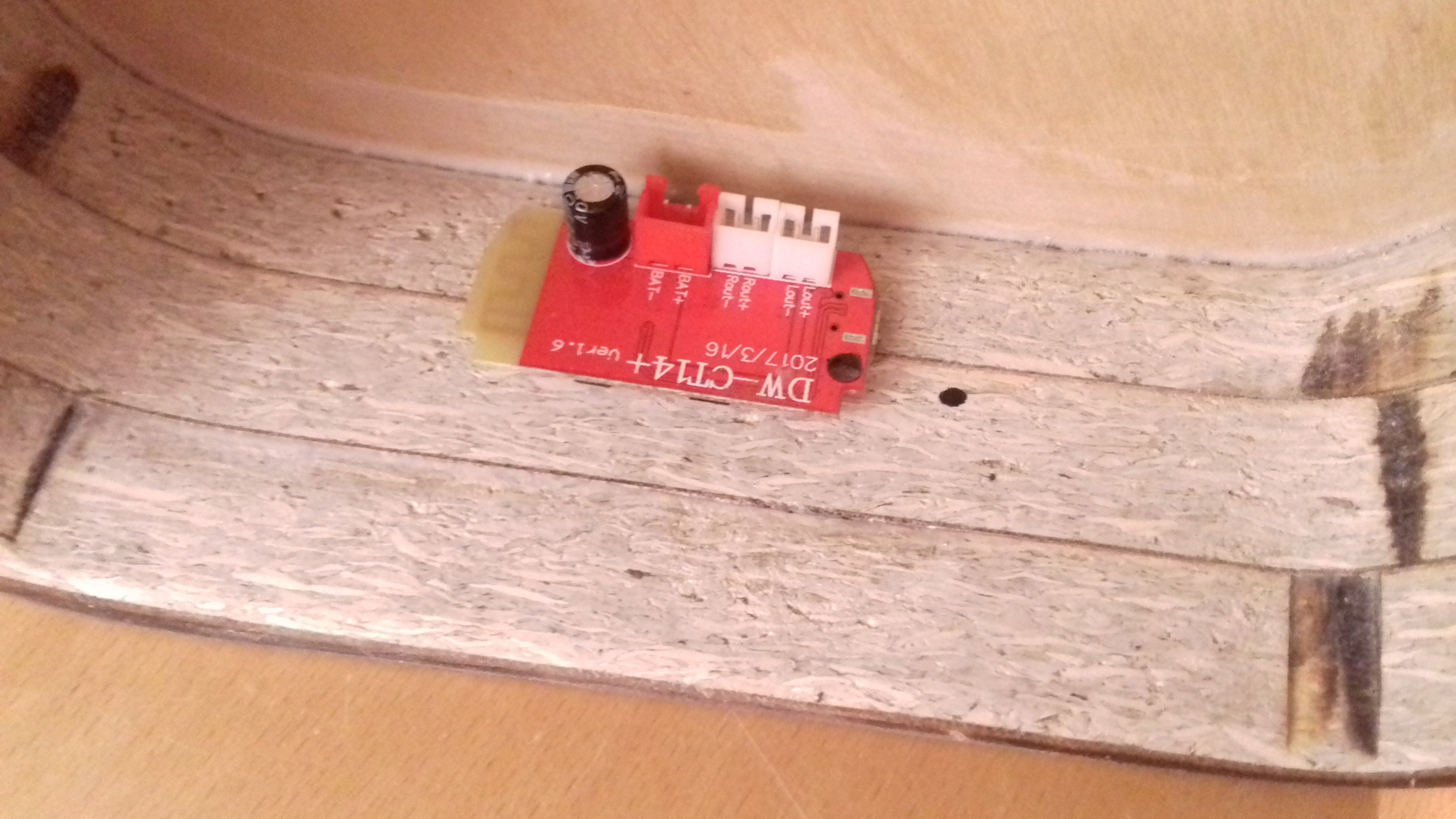 For fixing down the speakers, regular glue a.k.a. the super glue works wonderful. Apply it, a little onto a speaker, as well as onto the plywood. And don't try to save it; put as much as you can.