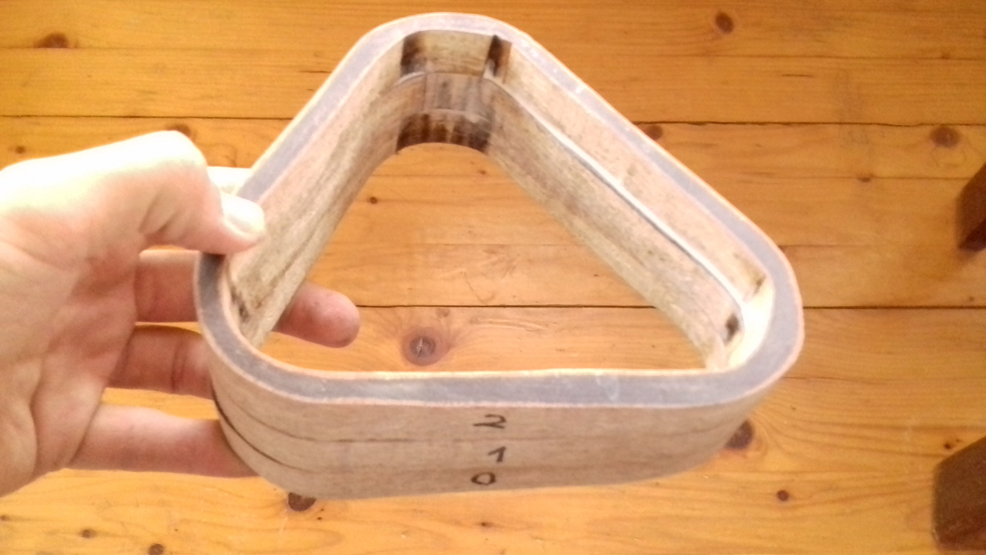 Finish cutting all, three parts, I've aligned them together, so they form nice shape with flat faces in plane. Also marked them with a number, so that I can know, where each one sits correctly. Then, sanded the surfaces where they rest on each other, to increase the roughness of area. This will help, when comes gluing them together with wood-glue. For this mini-part I used 180P sand-paper.