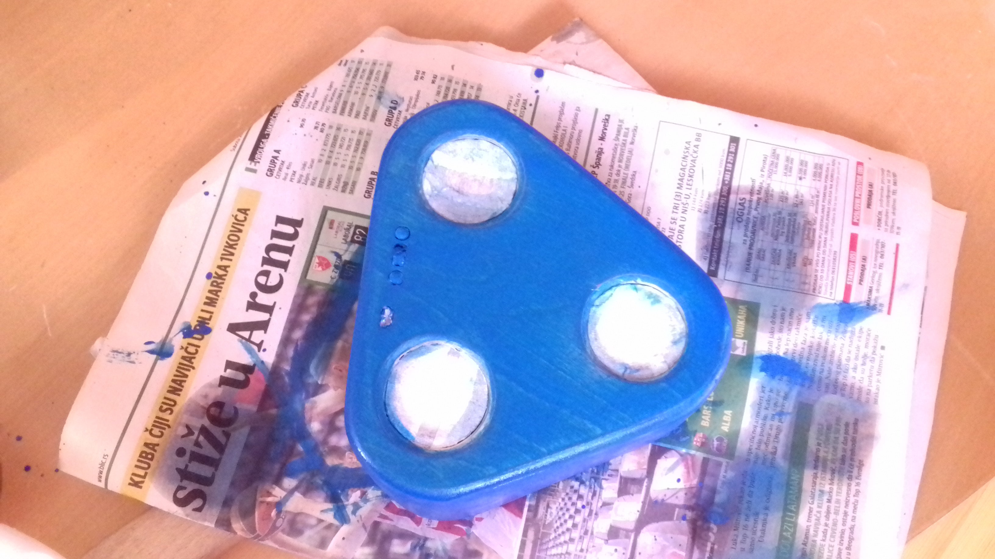From my Screw Bit Box project, I had a good amount of blue paint left, which I used for painting. Depending from your taste, you can clear coat it or maybe apply some coating for wood.