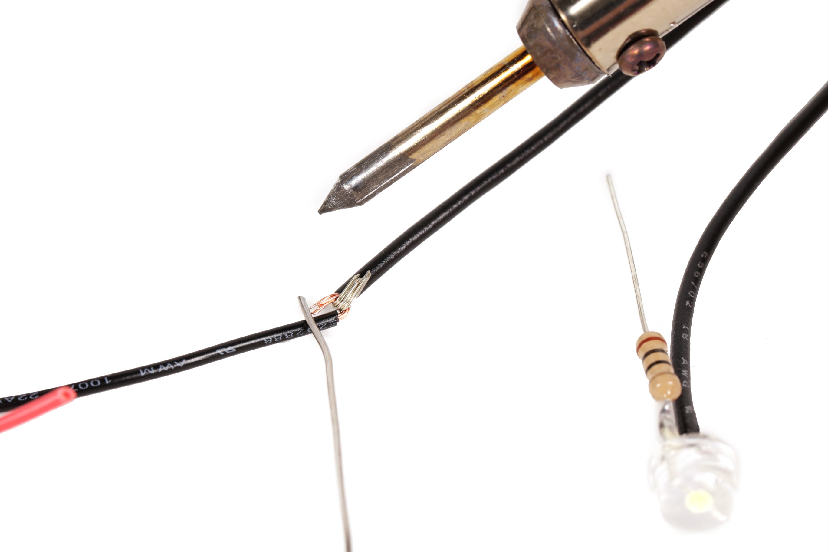 Finally, solder this red wire from the battery holder to the resistor's remaining lead.