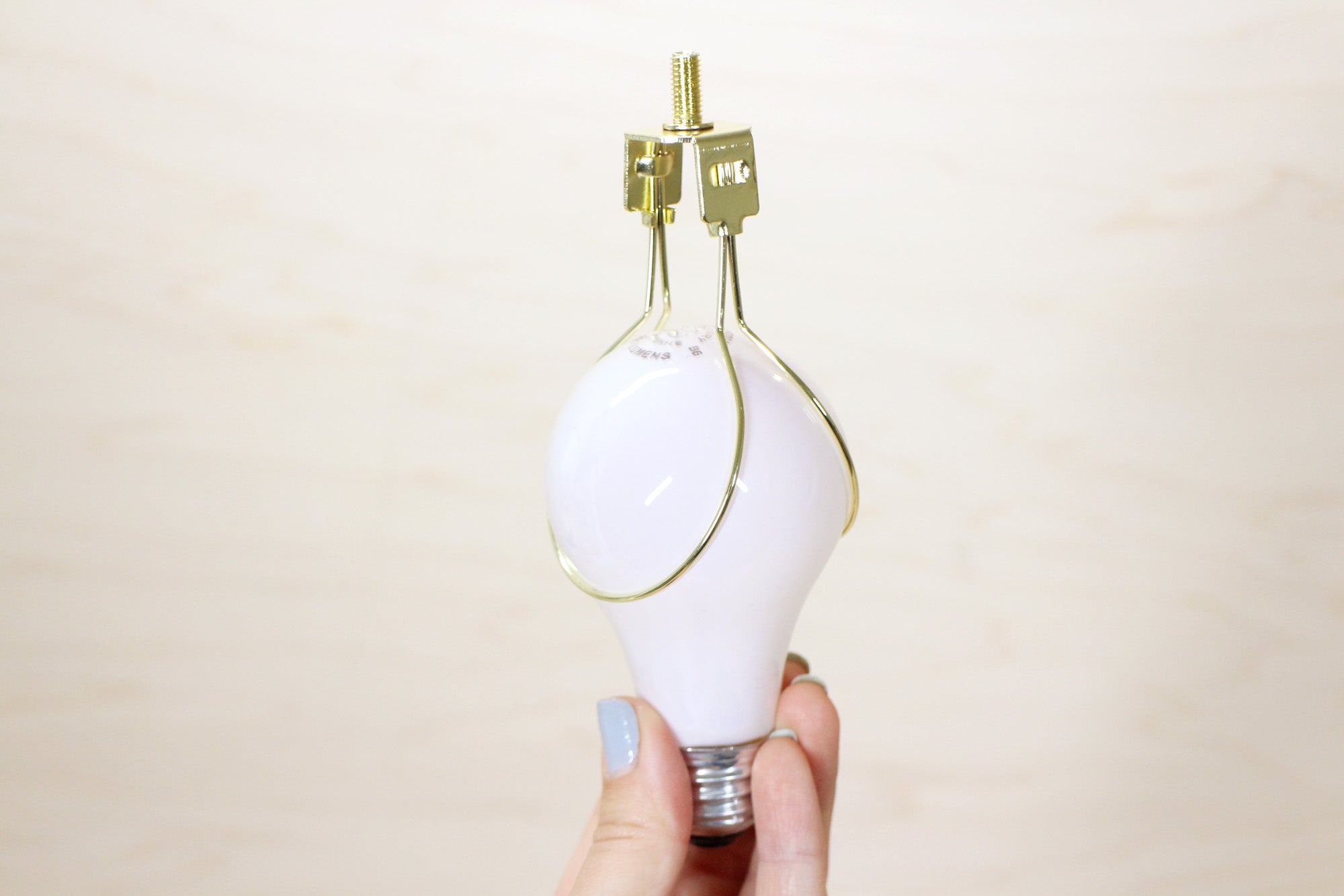 If you're working with a smaller lamp that doesn't have a saddle, bulb clips are a great way to attach shades to lamps, via the bulb.