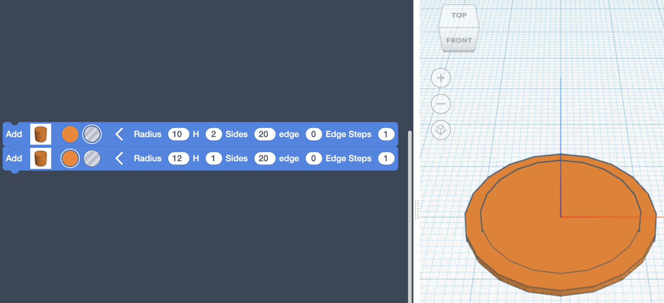 Add another Cylinder with Radius 12, and a Height of 1.