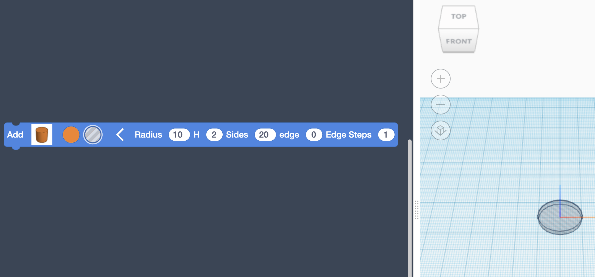 Drag a Cylinder to the Blocks Editor and click the arrow on the right to expand the drawer and see which parameters you can control.