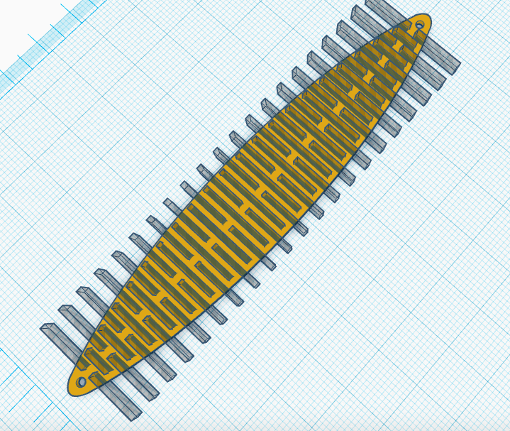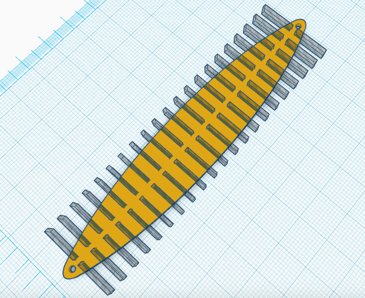 You can just wing it with spacing them, but I tried to use the ruler tool to make spacing them precise and then I would copy and paste groups to save time. Keep going until you have the whole thing essentially covered but leave room between the rectangles on each end and the hole for the jump ring.