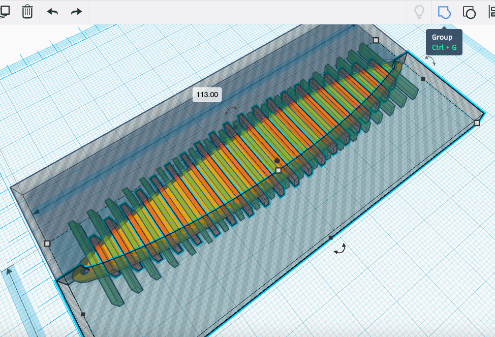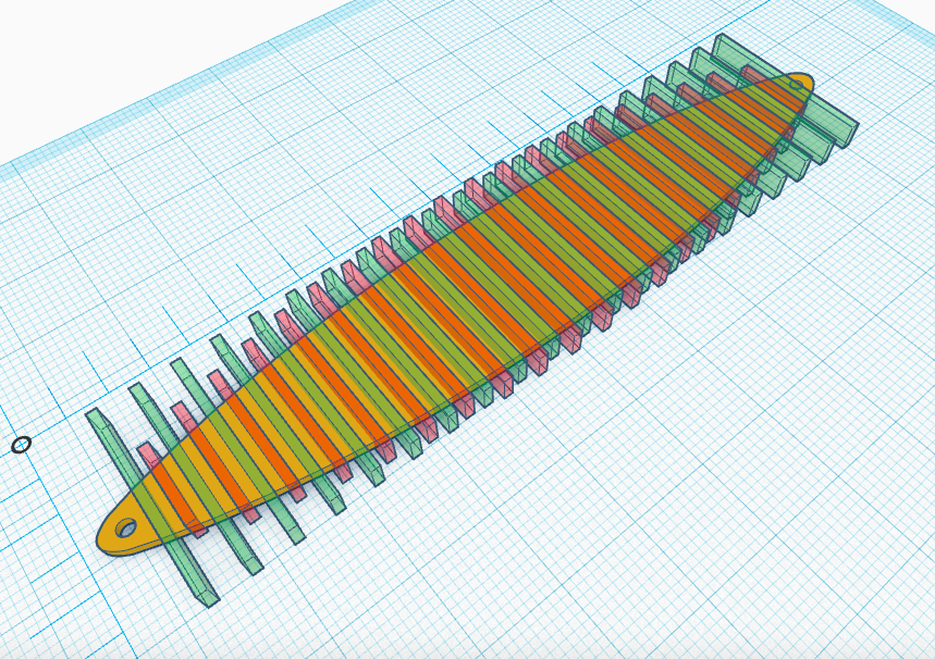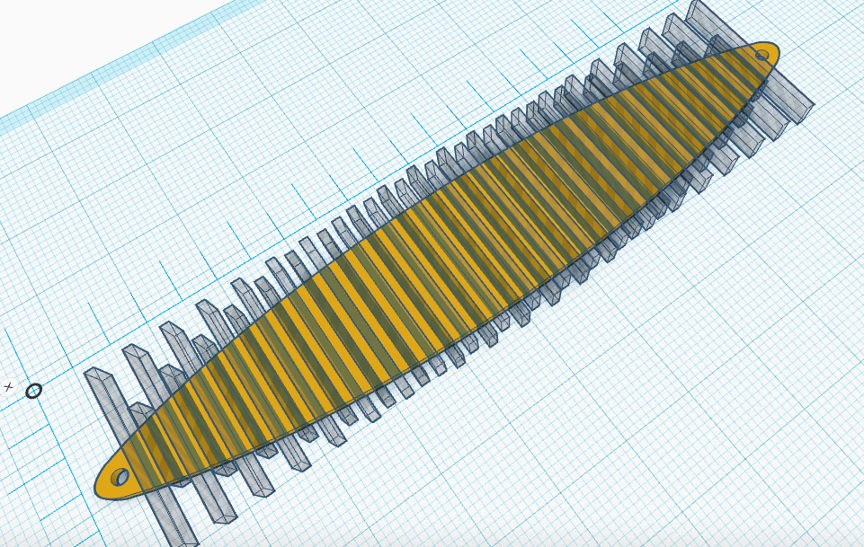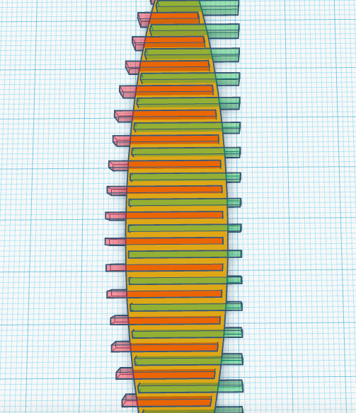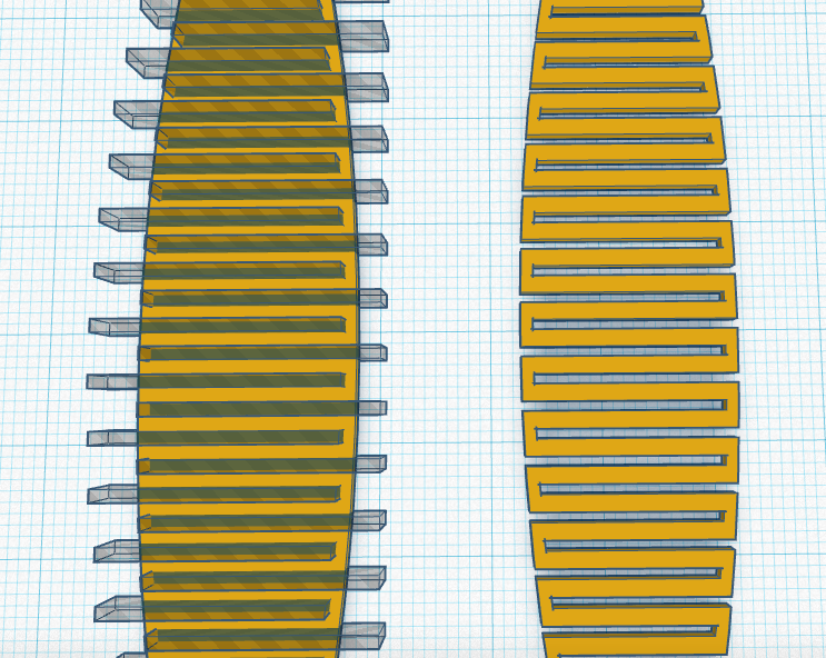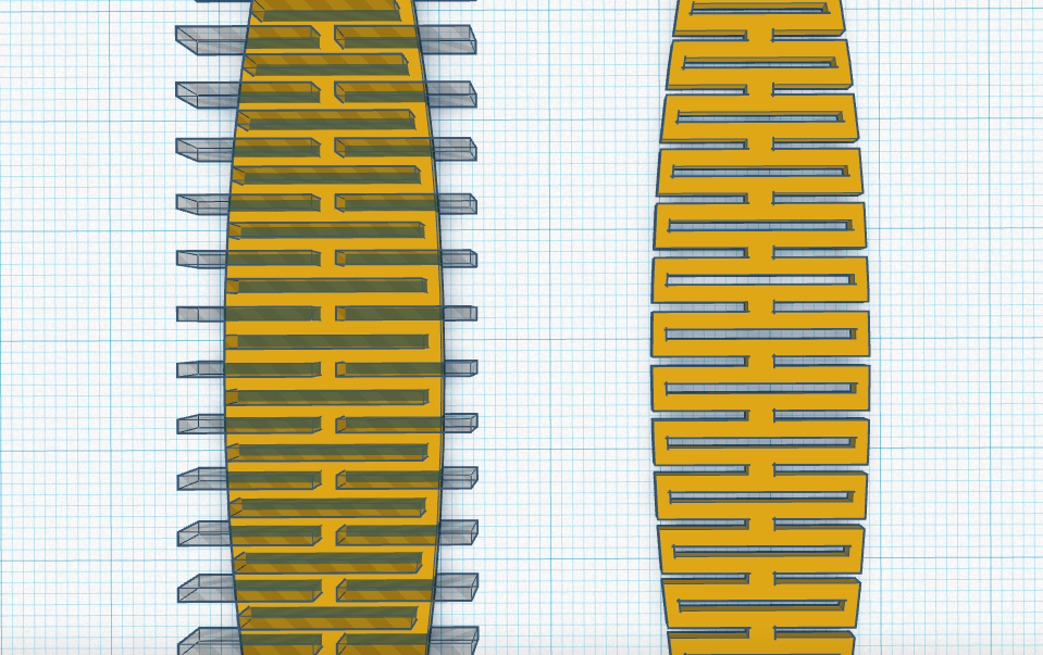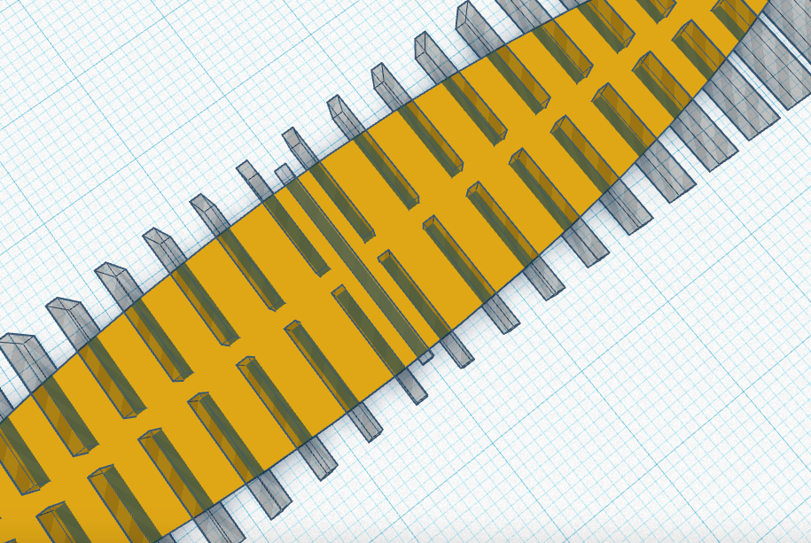 Now that you have the base shape and the cut out, you need to space them out. The closer the are together, the easier it will bend. In my earlier tests I had them farther apart and it didn't bend well. Right now, just place the rectangles all the way across the design as we'll trim the later.