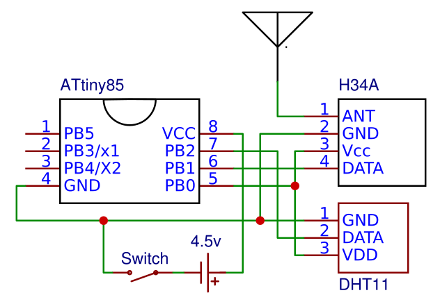 The software uploaded running to the attiny85 microcontroller, the main component of the sensor-sender units, has the purpose to read the data provided by the sensor, convert it to be transmitted by radio, and transmit it within Poisson time frames (exponential distribution or PASTA - Poisson Arrivals See Time Averages). Also, by using a simple function, it monitors the status of the batteries and gives a warning if the required voltage for the sensor is no longer provided. Source code is available on github. The code for the test receiver is very simple I'm posting it below.