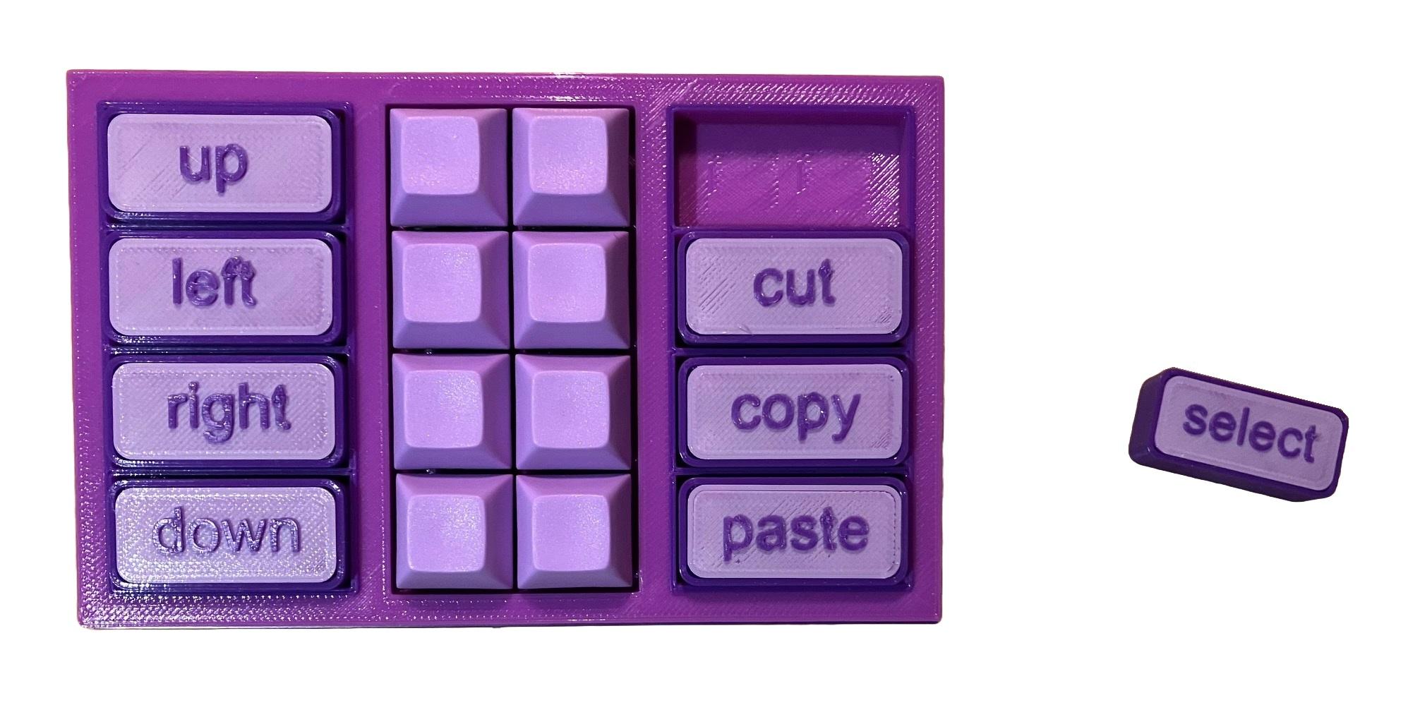 My solution was to build a MacroPad that has eight keys based on nice Fubata MD-4PCS switches. Beside each key is a slot that can hold a "special" tile which identifies a macro to be associated with that key. To be perfectly clear, all of the available macros will be defined in the firmware in much the same way as with other MacroPads. The tile holds a "simple numeric value" that maps the associated key to a specific internally defined macro sequence when the tile is inserted into the slot.