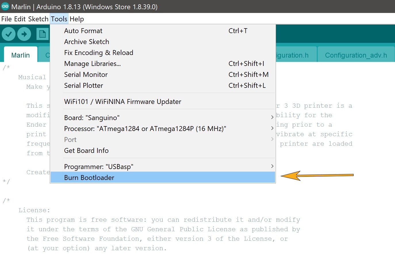 After this, you can follow the rest of this Instructable to flash the Musical Marlin firmware onto the control board.