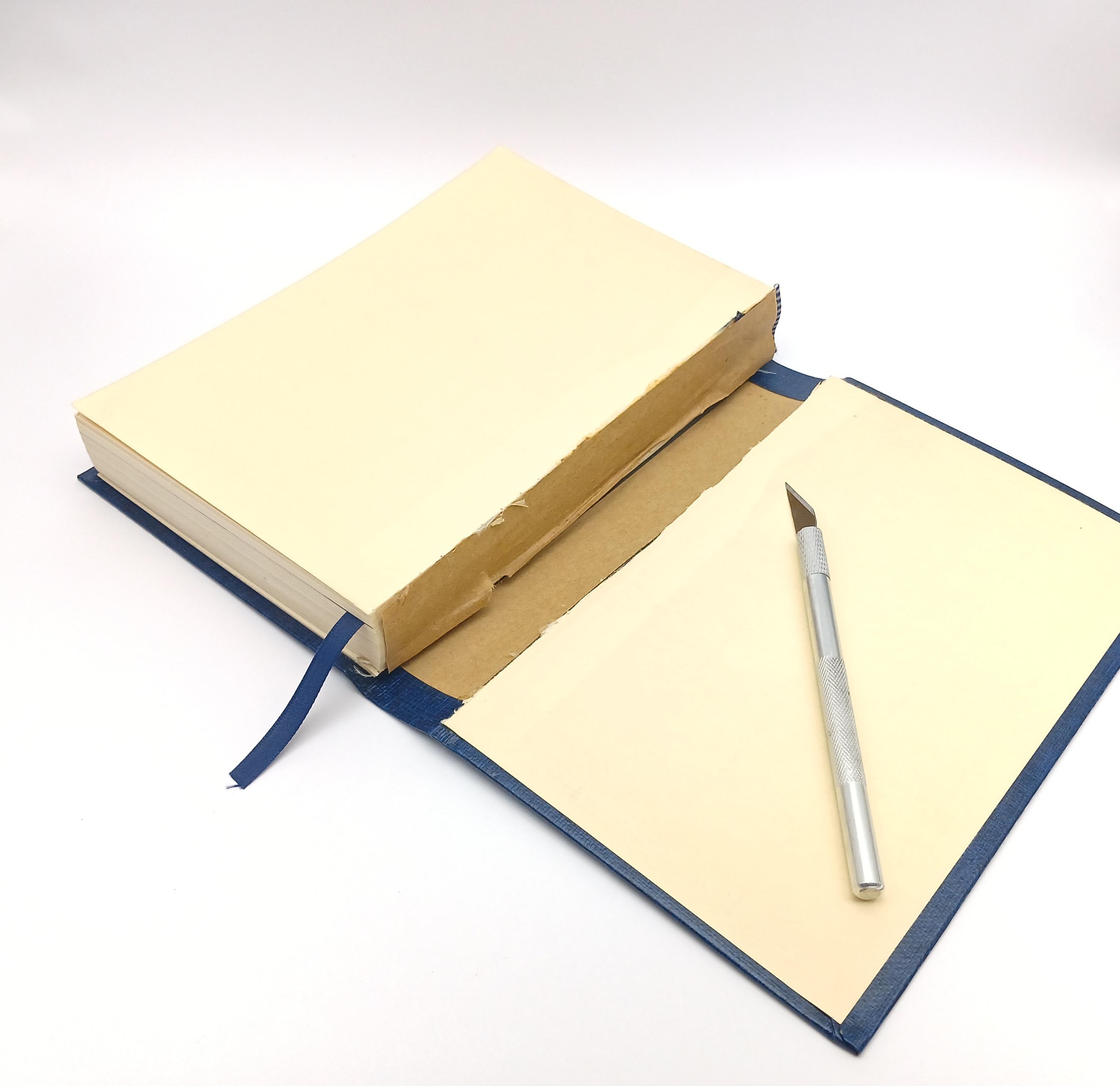 First we will need to separate the hardcover from the pages to make cutting the void later easier.