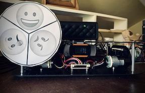 This robot acts as a variety of different personalities, and can even show "emotion" by moving the positions of a servo to select emotions from a wheel.