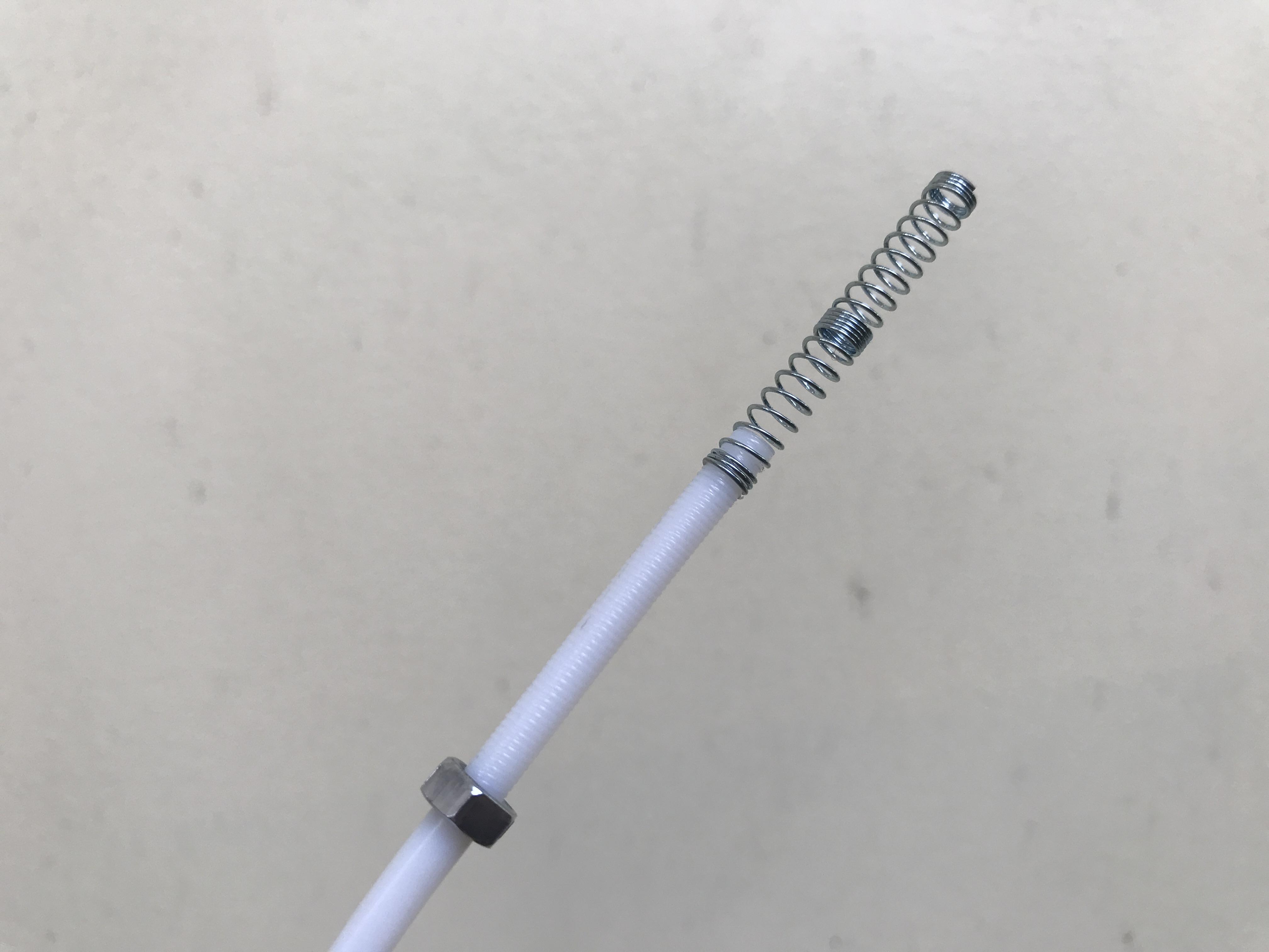 While heating the spring, I can hold a long teflon tip and spin it around. It's not hot enough at this moment, it's getting hot when we push the filament out.