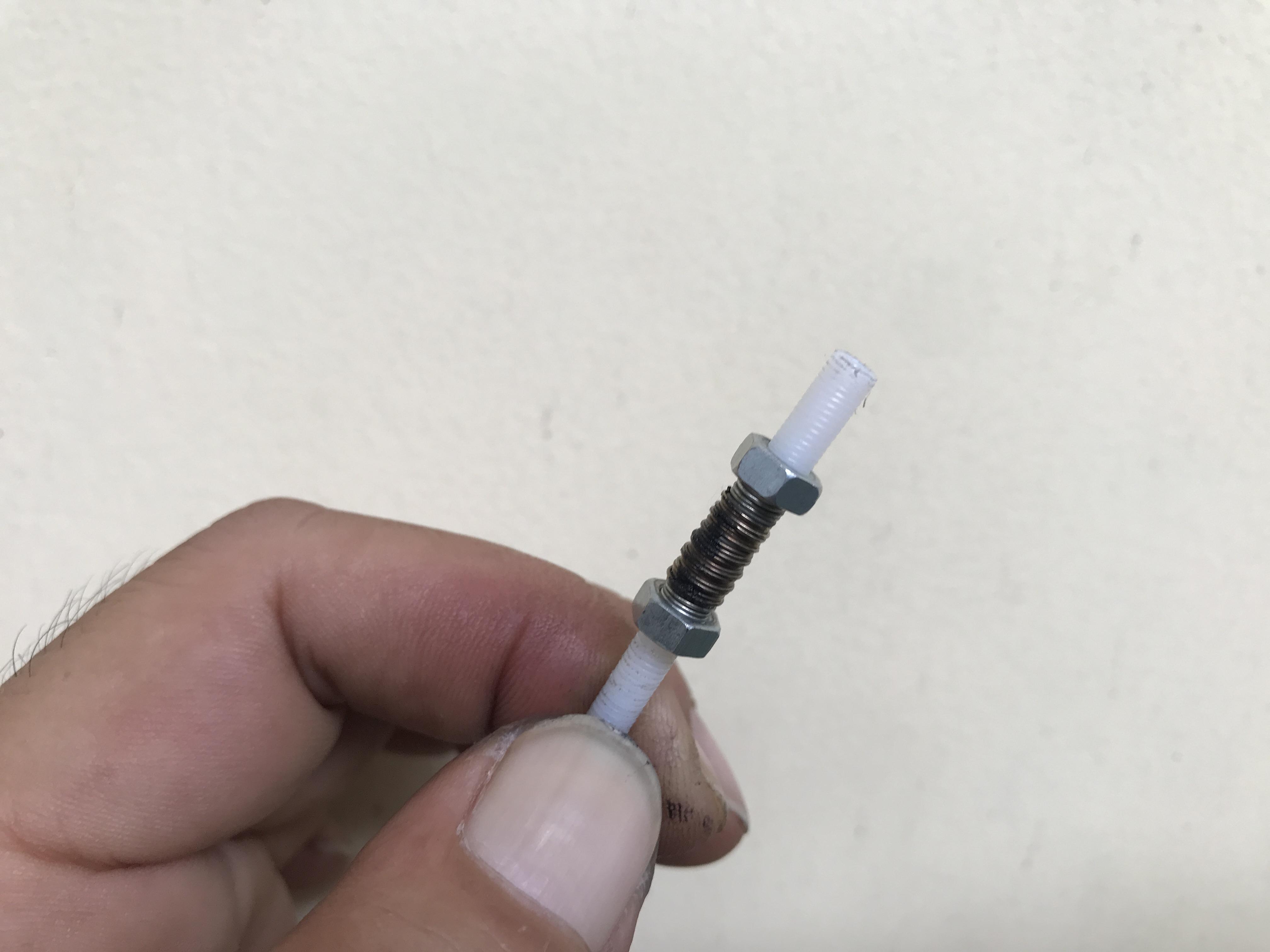 After welding, we should use a plier to hold the M4 nut one side and push the PET filament to the opposite side. Remember to place the PET filament output facing to the ground otherwise it may fold due to gravity.