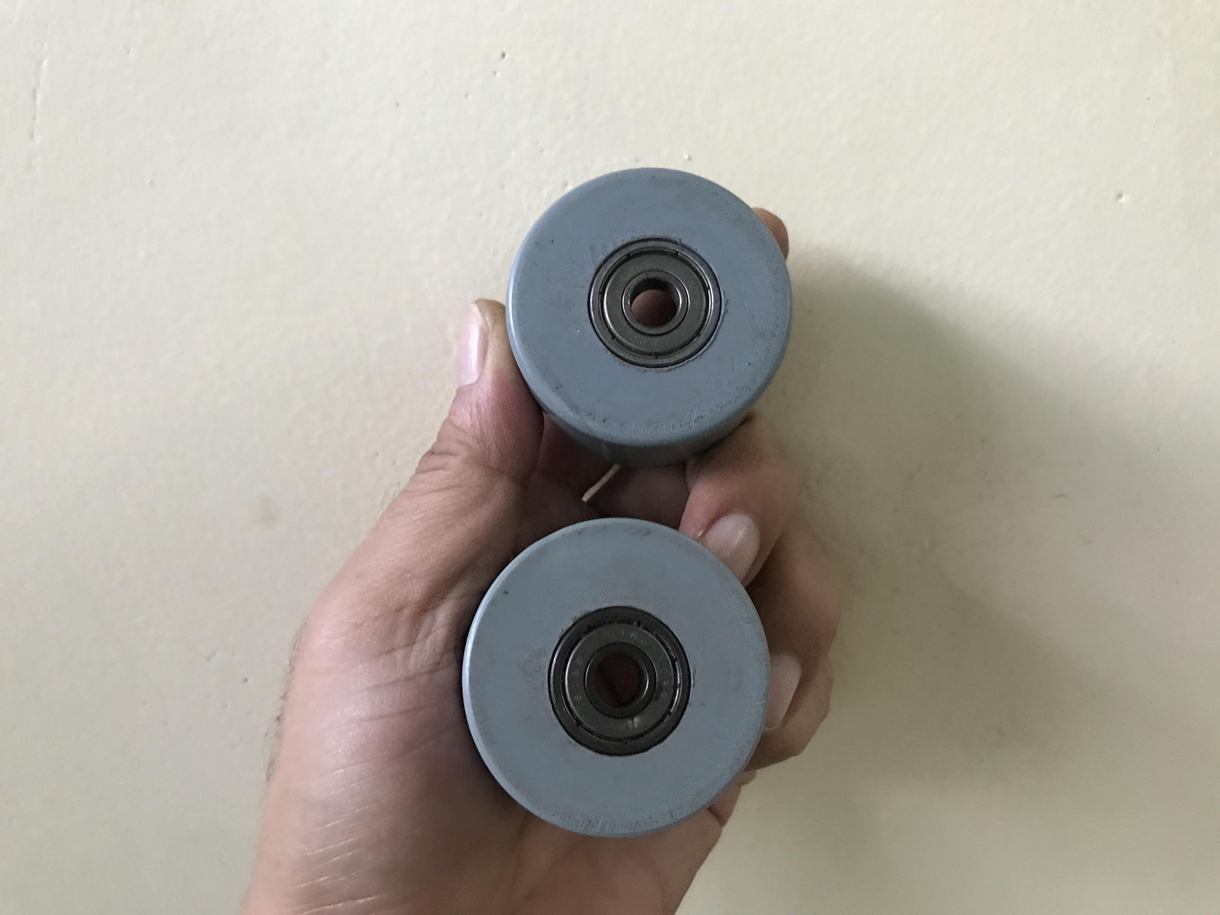 Firstly I made a roller using PVC fittings, at both ends it had 2 bearings like this.