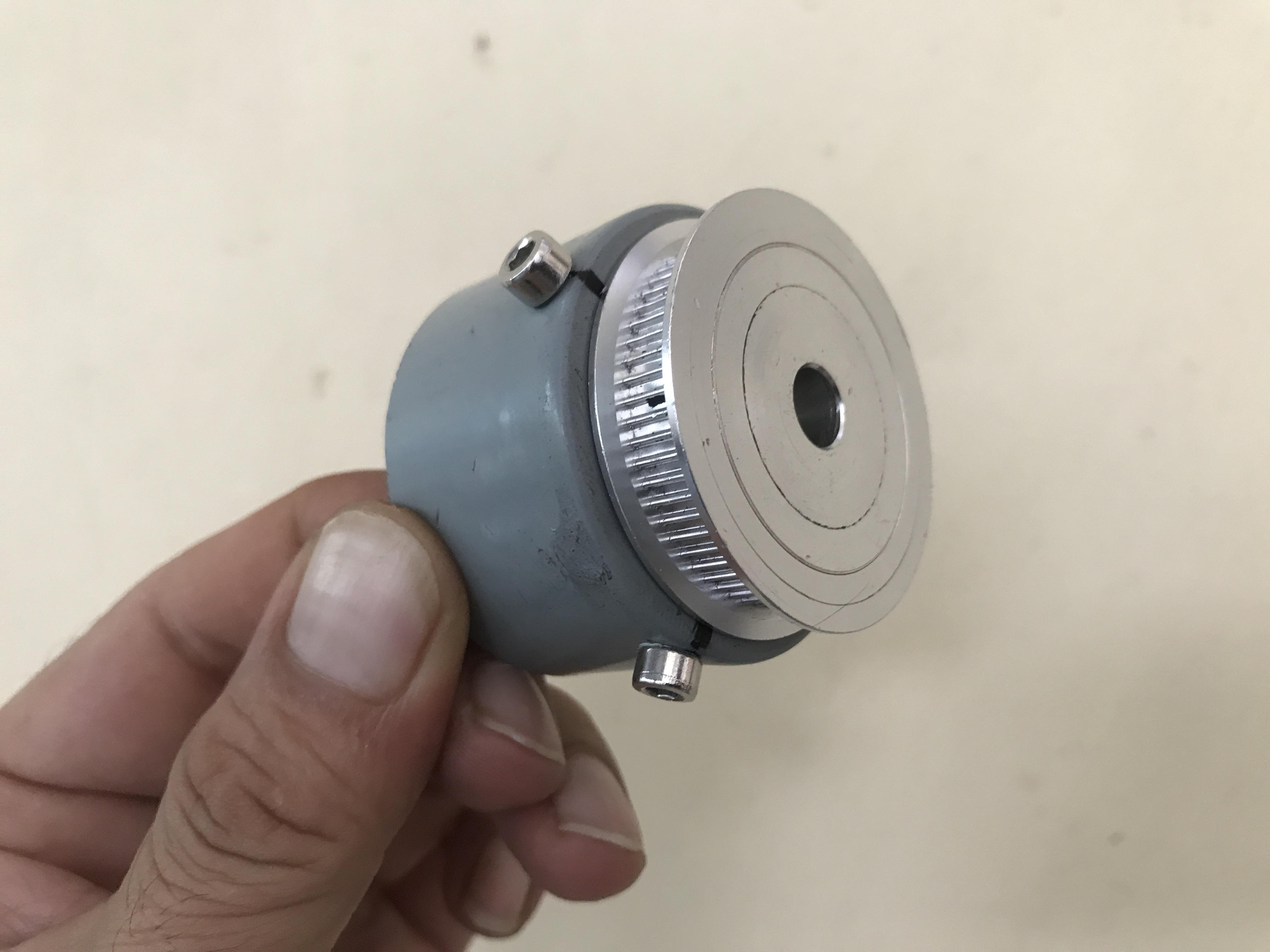 This was the most difficult part for me to make this machine. As we know, each timing belt pulley 80-teeth (or 60-teeth) has 2 holes to tighten the set screws and they fits M5 or M4 bolts.