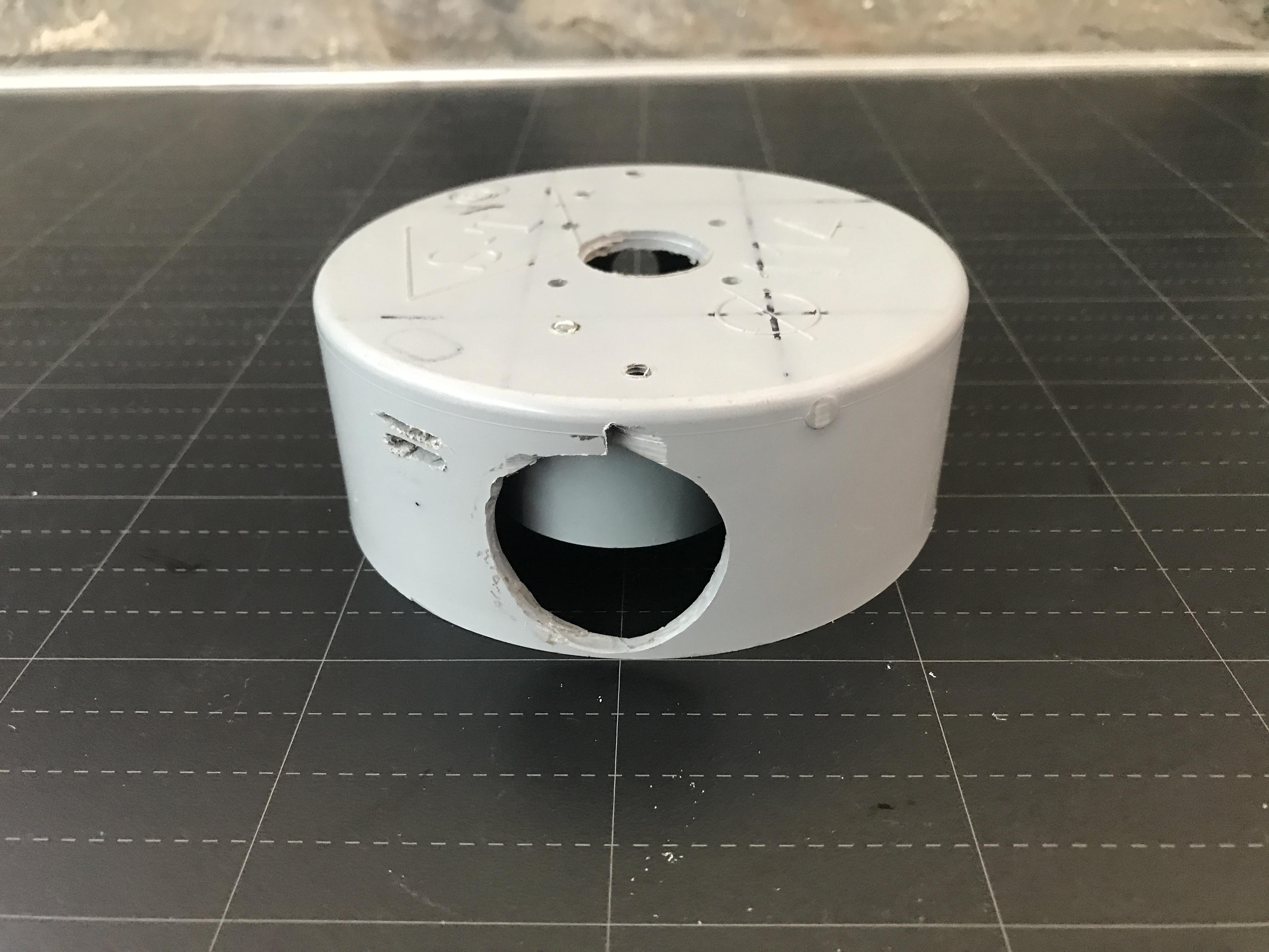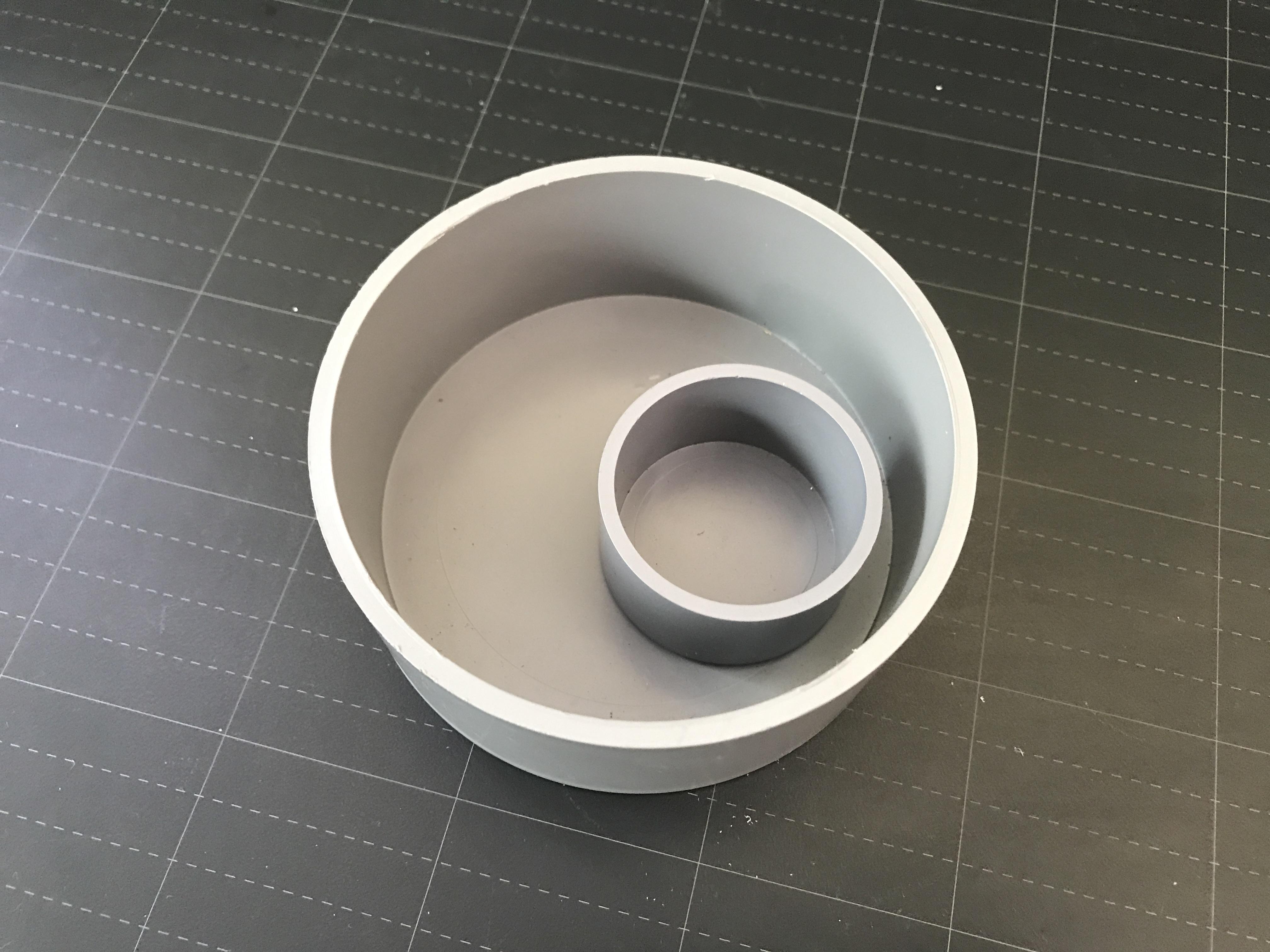 A PVC connecting pipe Ø49 has outer diameter around 58mm. So I used empty filament spools that have inner hole diameters around 58mm. Then I wrapped a layer of tape on the PVC fitting to make sure they were tight before glueing them together.