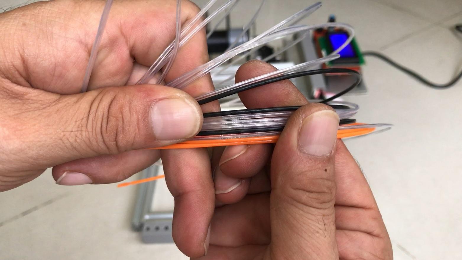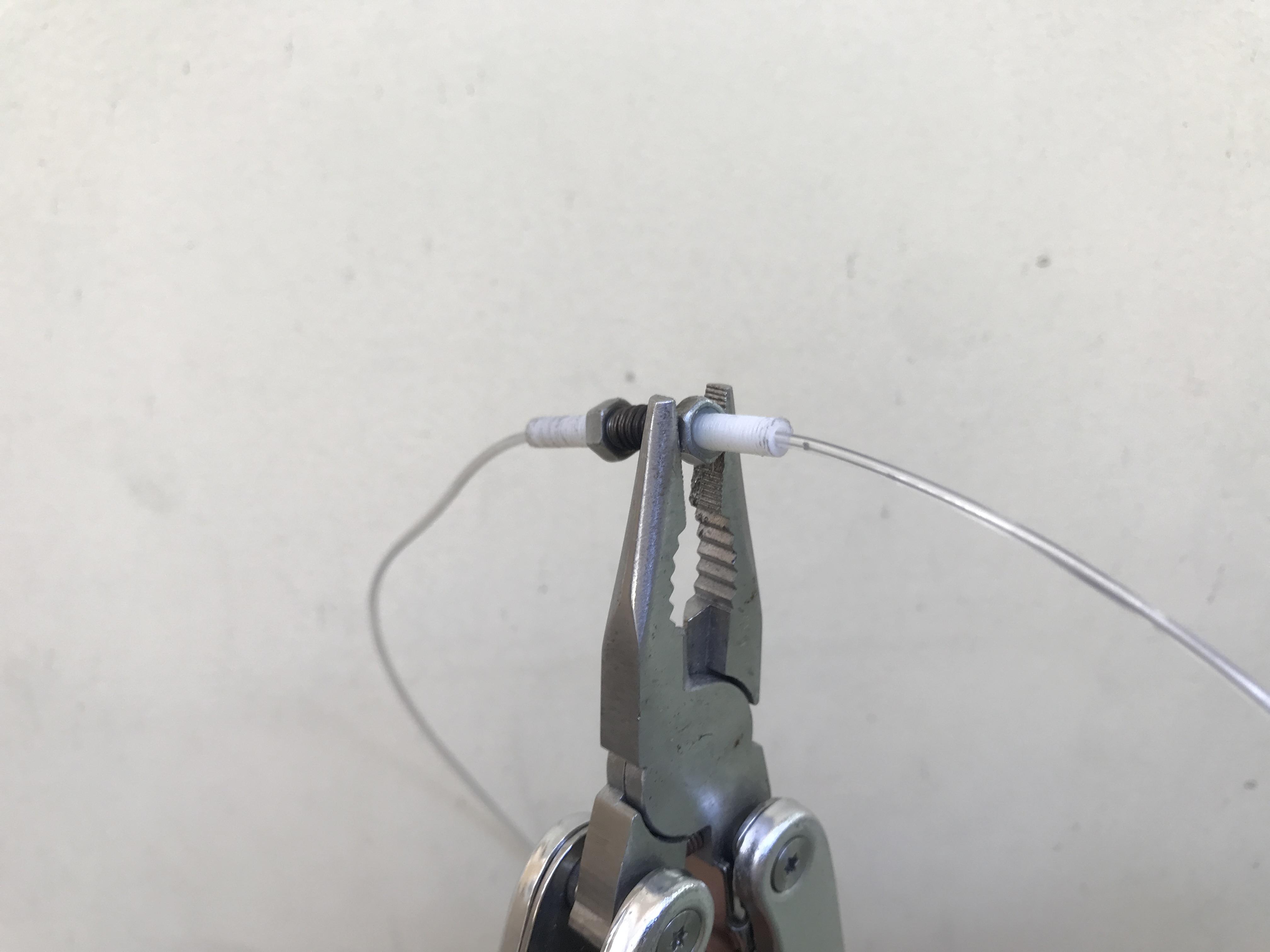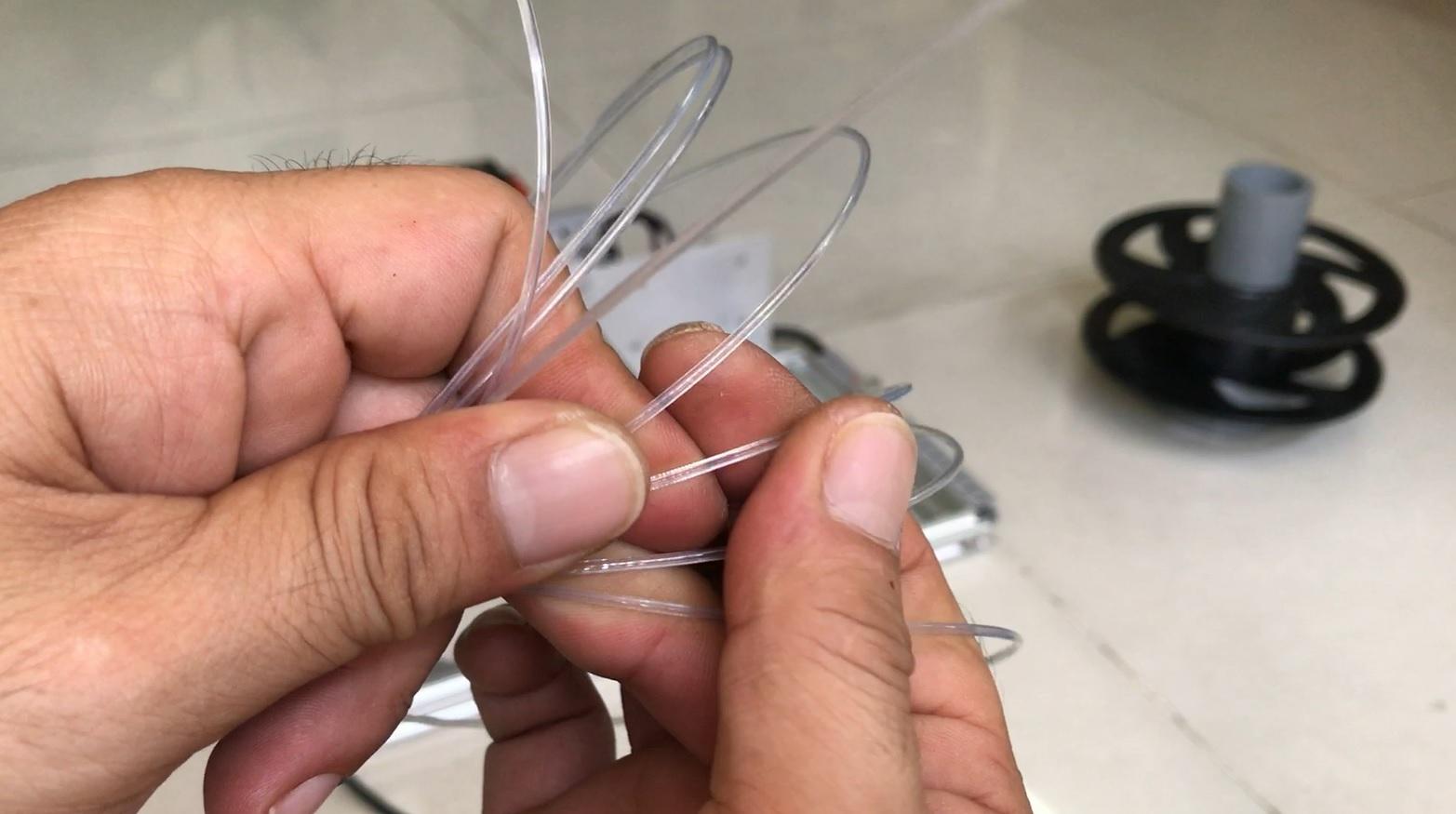 After welding, we should use a plier to hold the M4 nut one side and push the PET filament to the opposite side. Remember to place the PET filament output facing to the ground otherwise it may fold due to gravity.