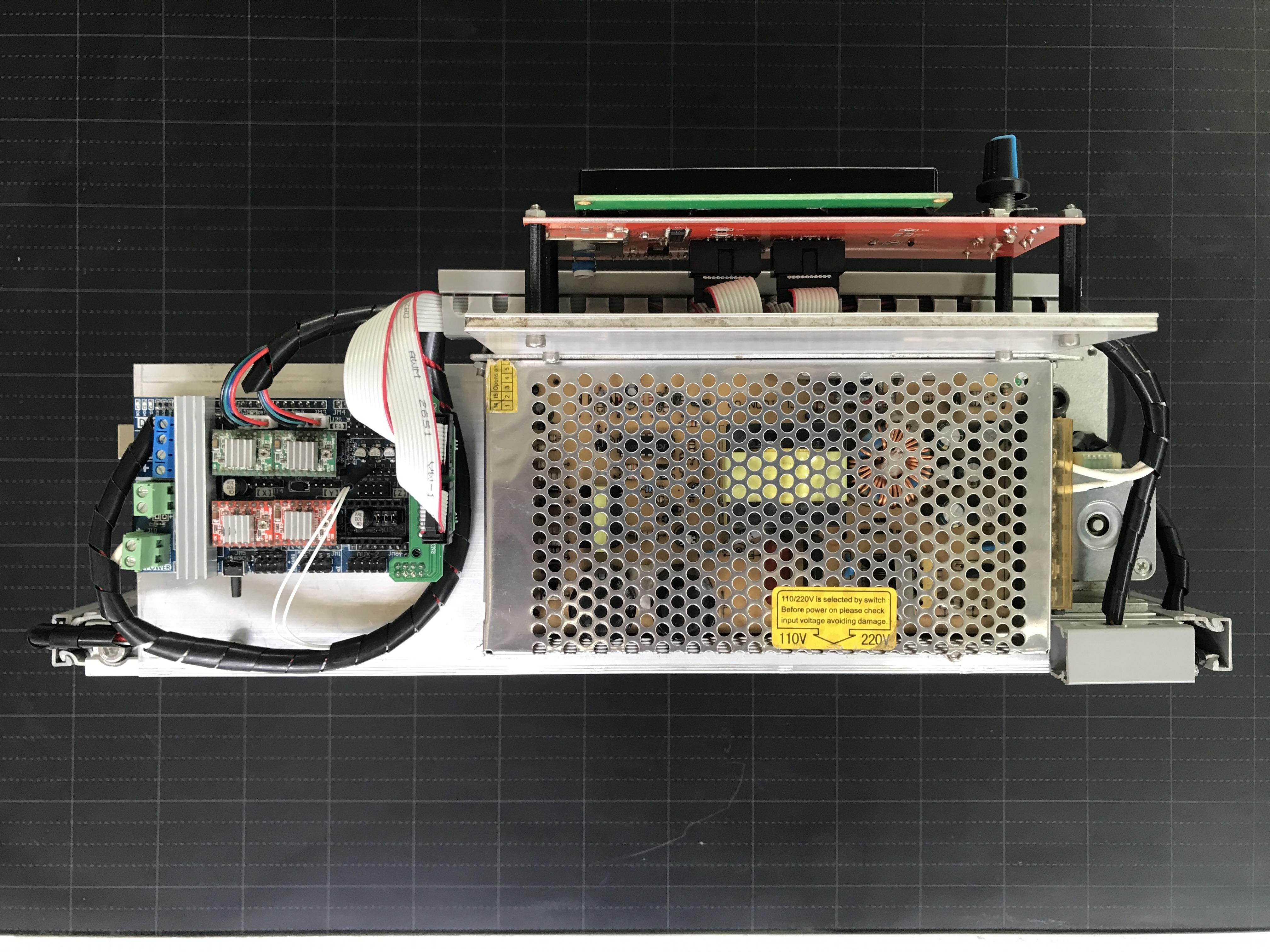 I mounted one power supply 12VDC/ 10A, Arduino Mega 2560 and LCD 2004 on it.