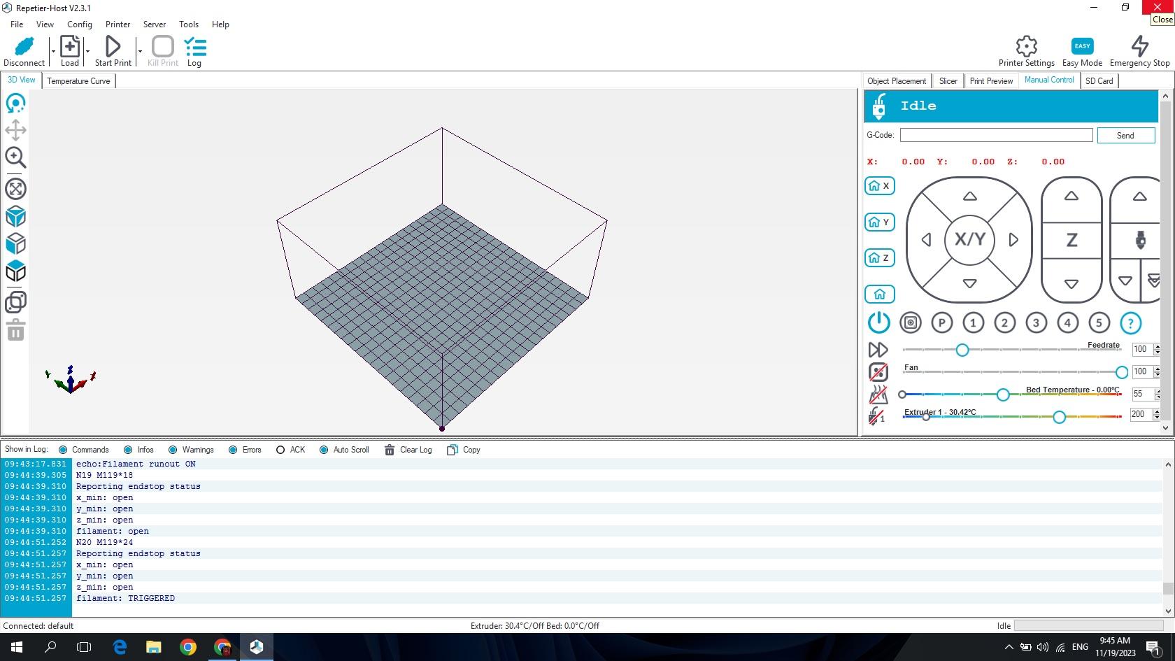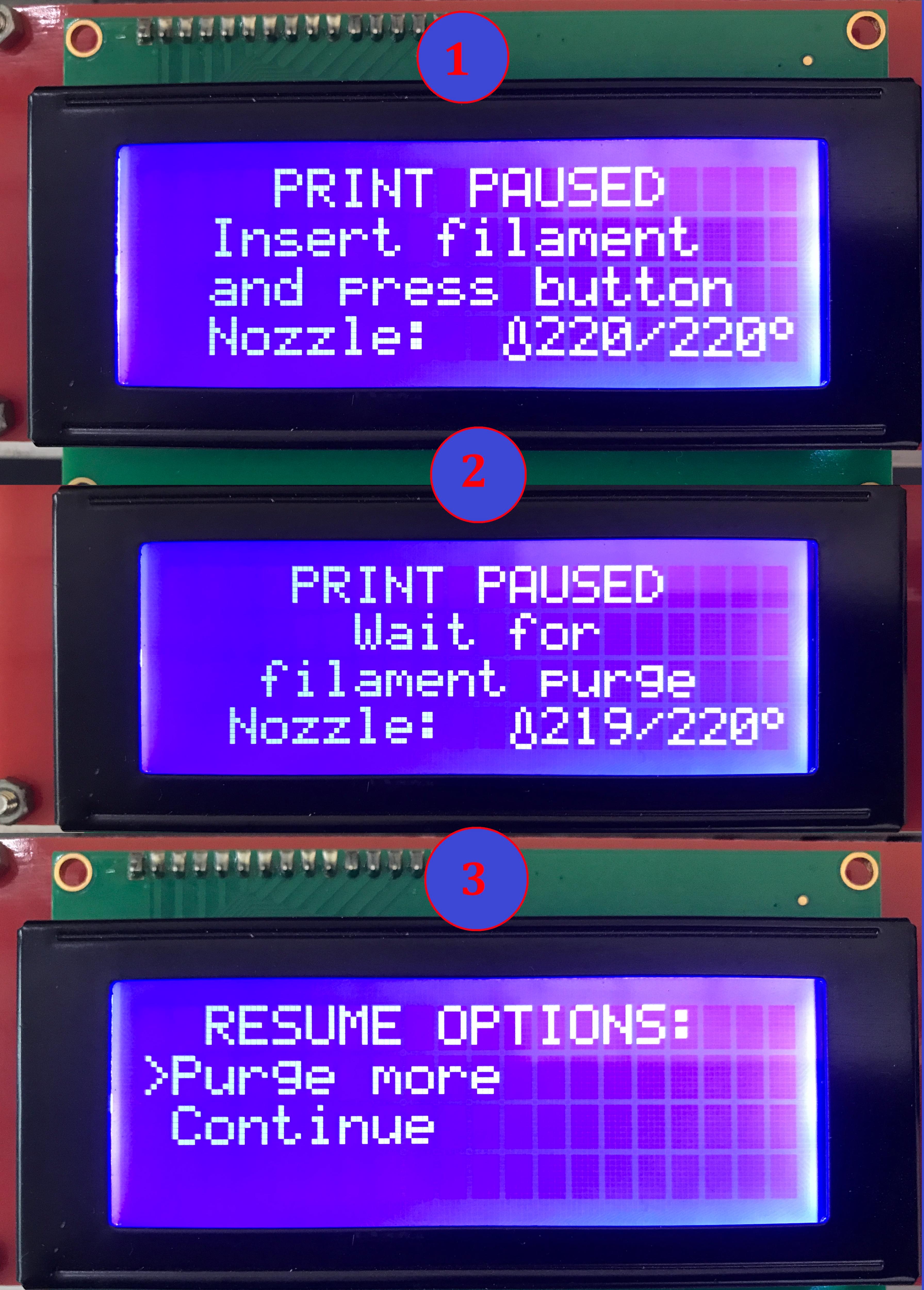 With the configuration in the previous step, I was able to run the machine in manual mode but I wanted to run machine using GCODE from the SD card. Of course, in this case, I can use "Pause/ Resume" or "Change Filament" on the LCD screen to change the bottle strip. But I like the use of a push button to simulate breaking or running out of filament.