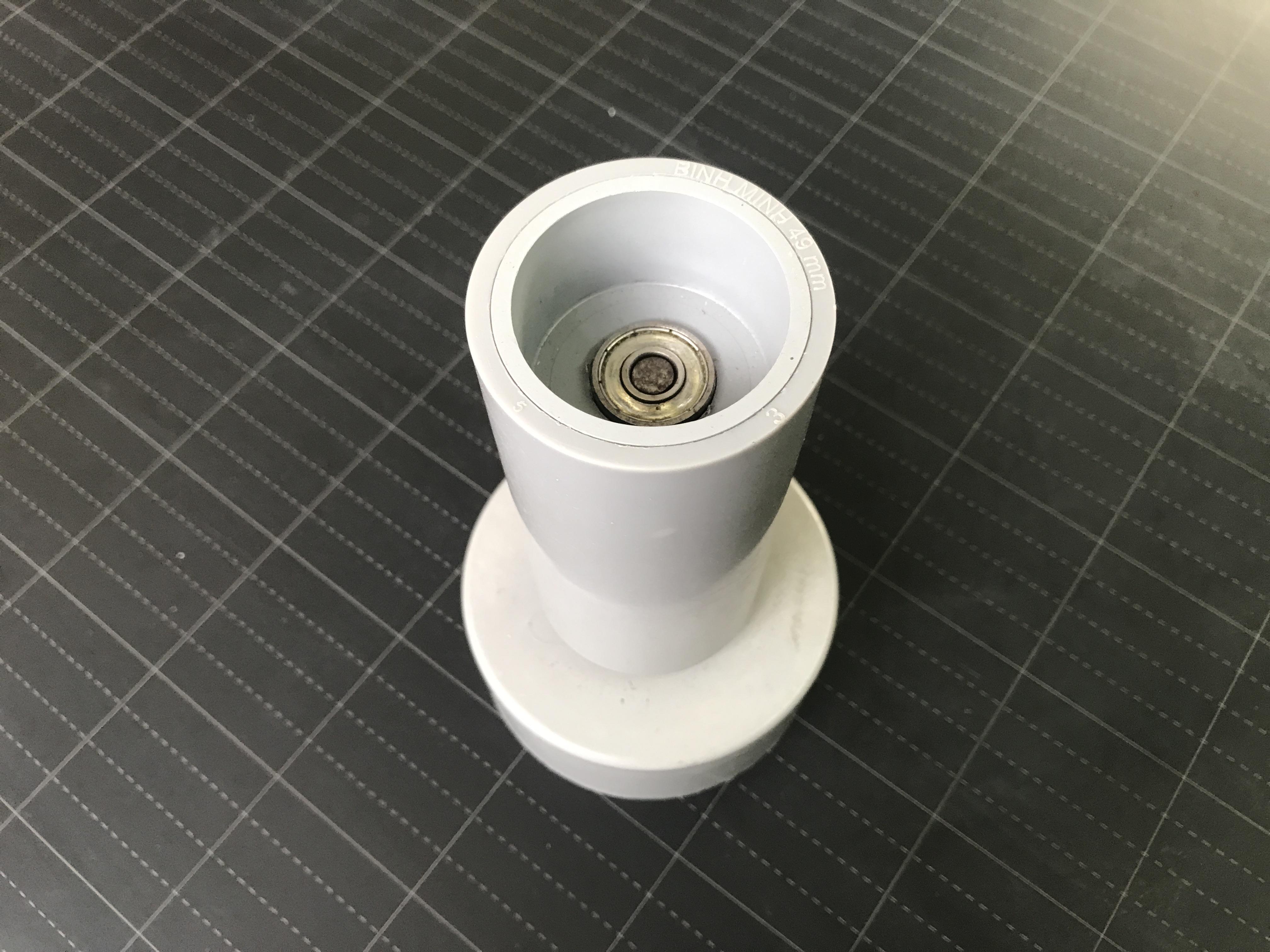 Firstly I made a roller using PVC fittings, at both ends it had 2 bearings like this.