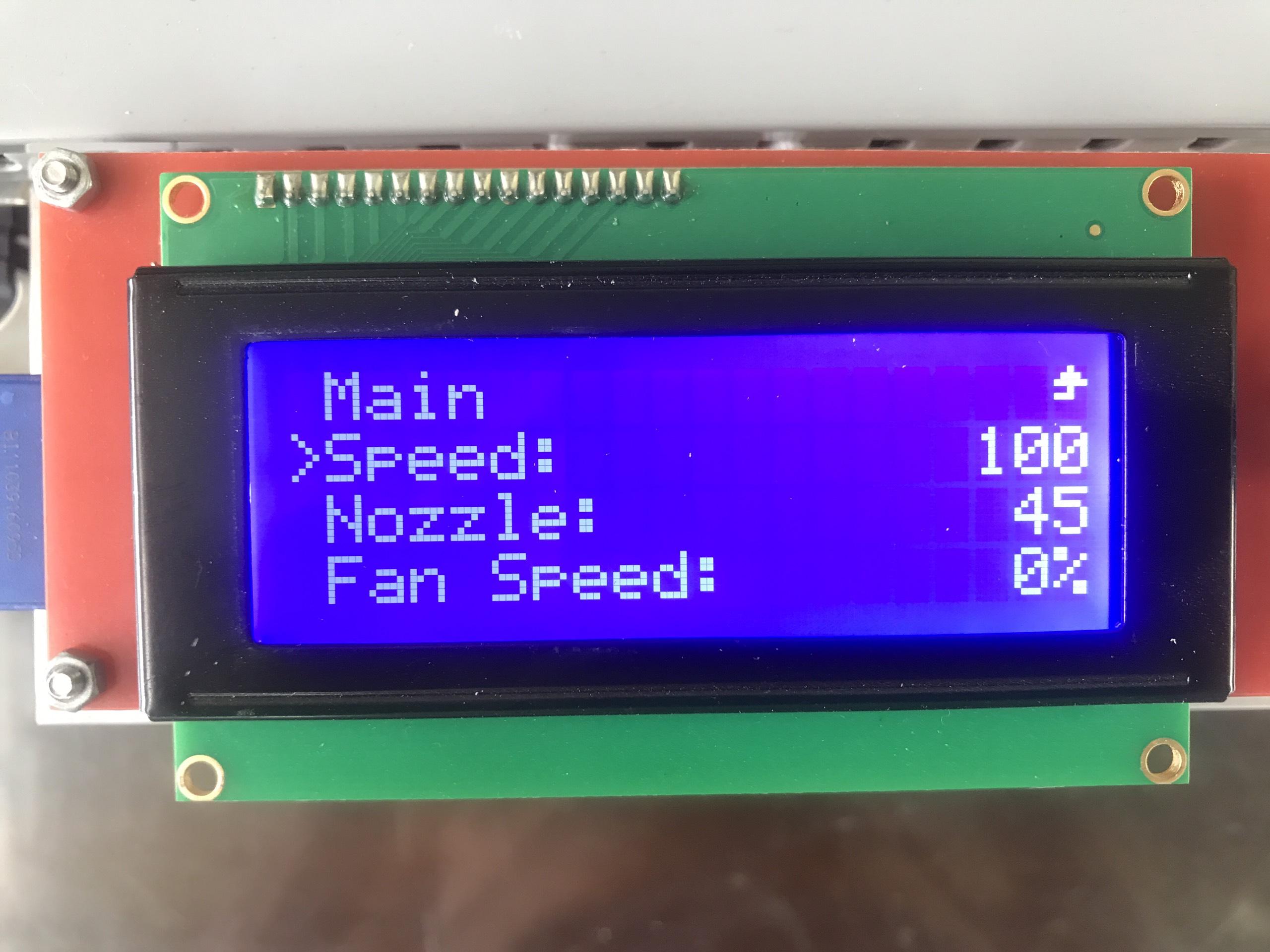 The "Tune" menu is available on the LCD while the machine runs GCode from the SD Card. And Speed (Feedrate multiplier) and Nozzle (Nozzle temperature) items can be adjusted.