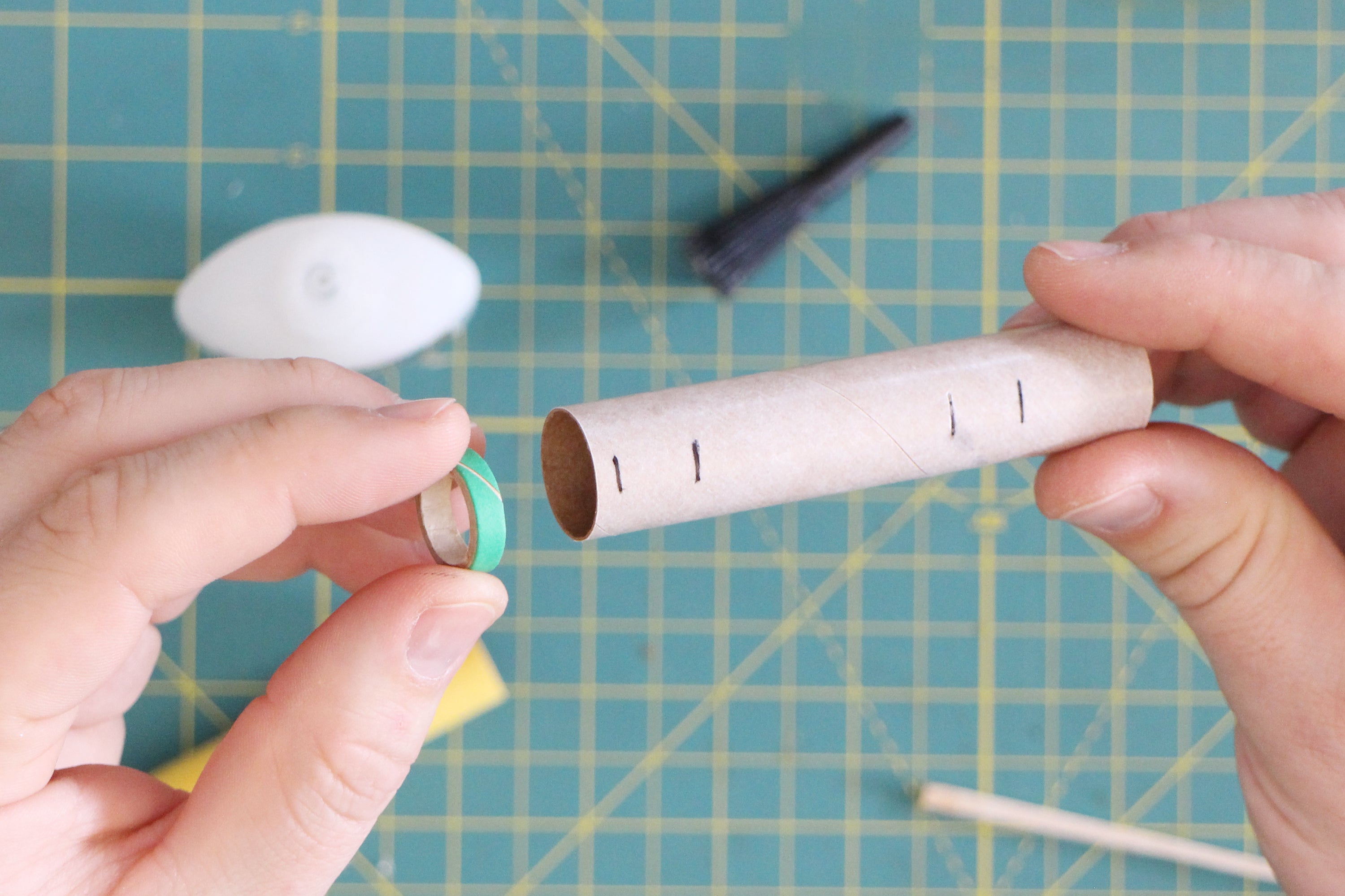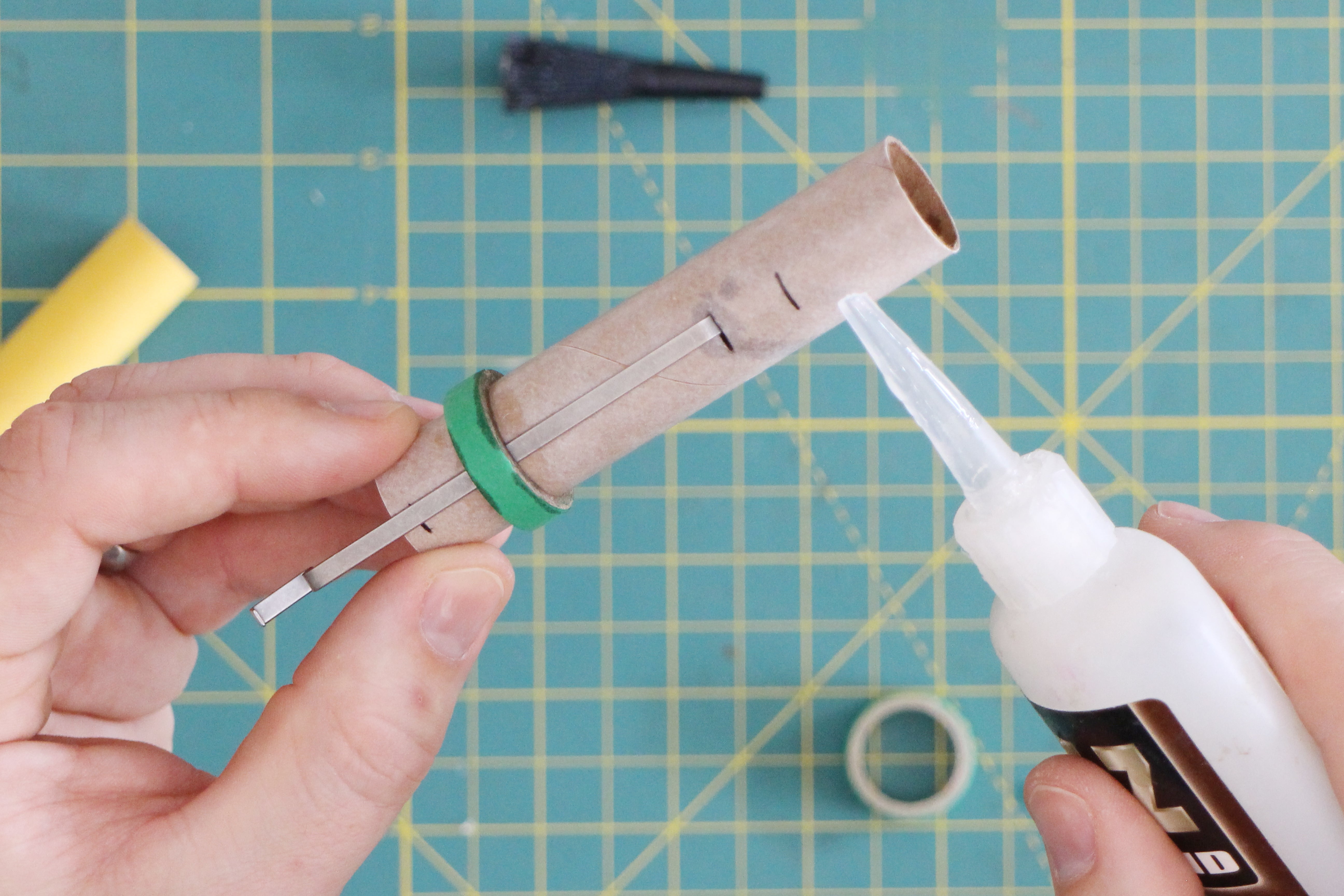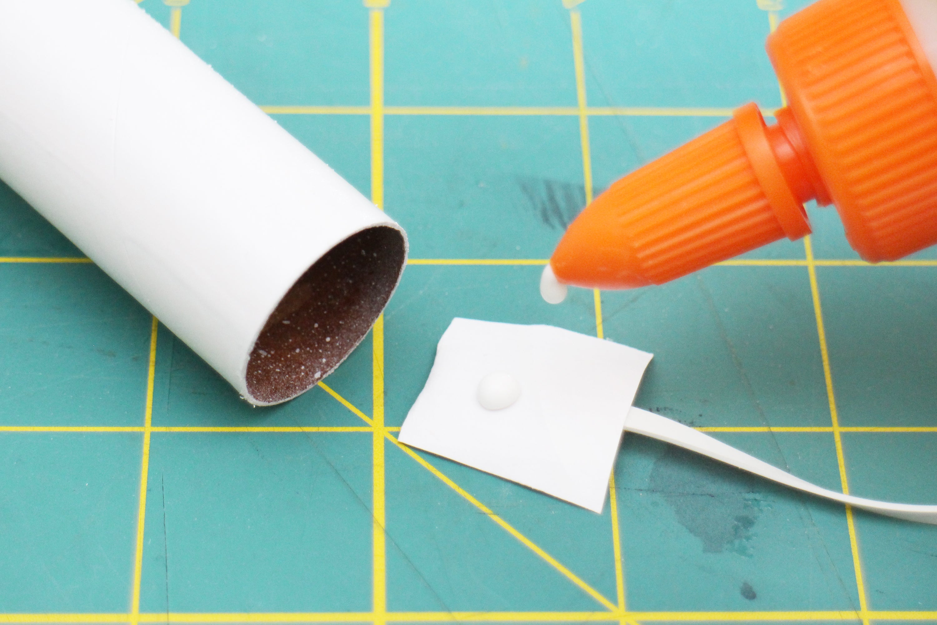 Set the freshly glued shock cord mount aside to dry. While it's busy doing that, we can move on to painting the rocket body.