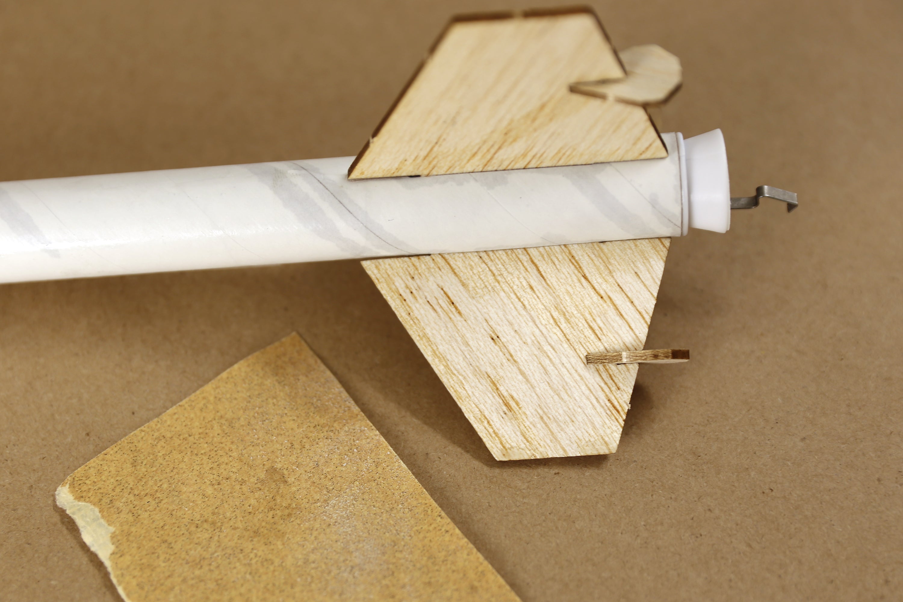 You can sand the edges if there are any uneven parts, or sand the faces if you find they need it. Set the fins aside for now, we'll come back to them after we finish assembling the rest of the rocket.