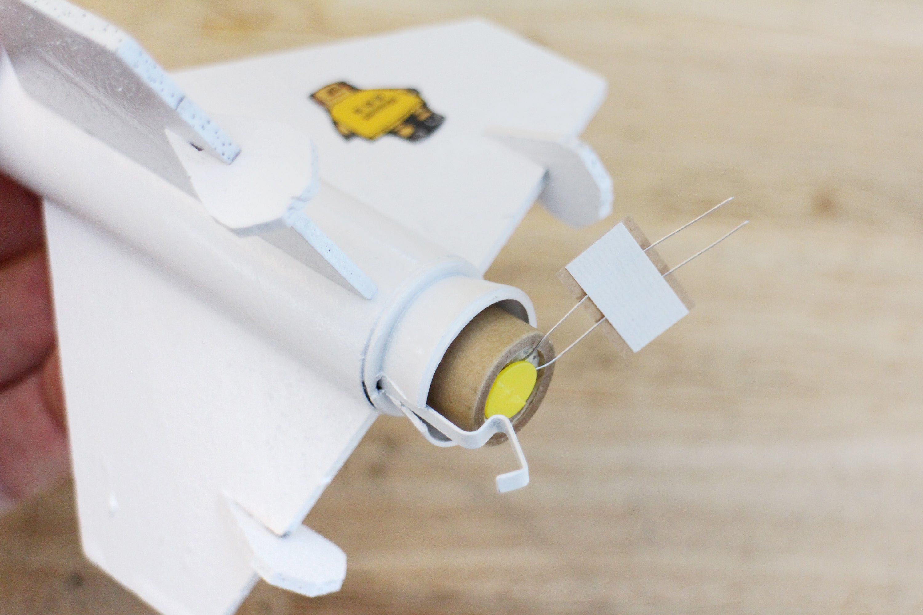 After painting, the shock cord mount can be attached to the fuselage.