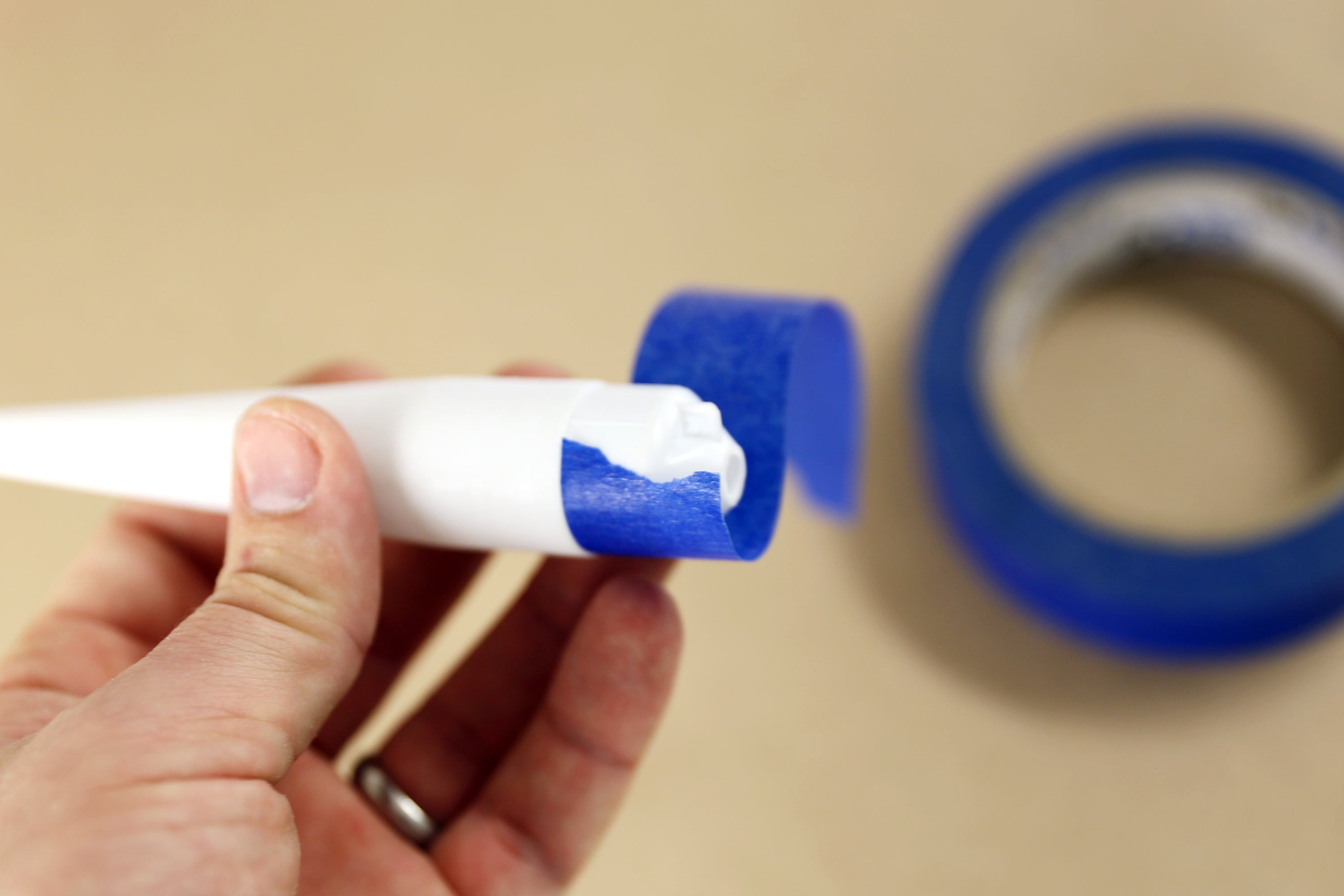 I protected areas that I didn't want painted, like the neck of the nose cone, with painters tape.