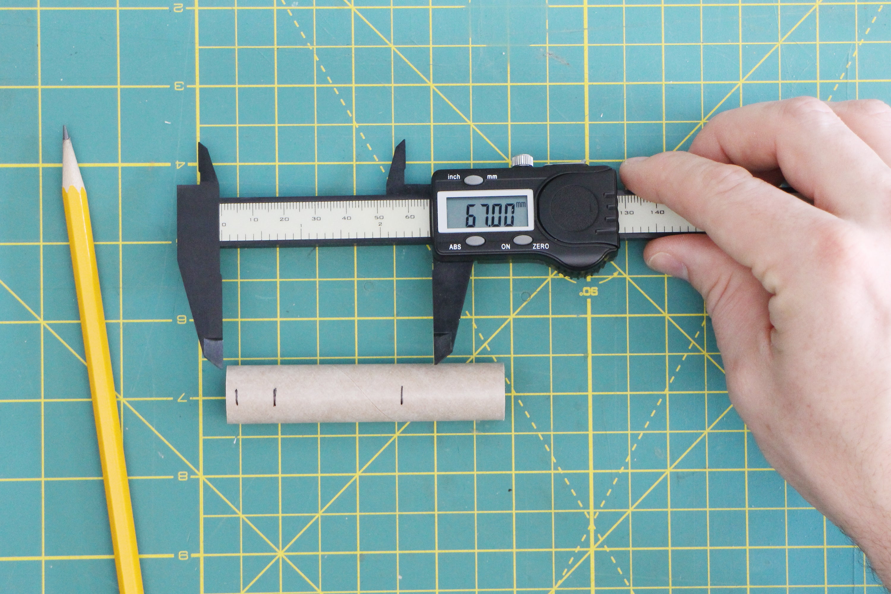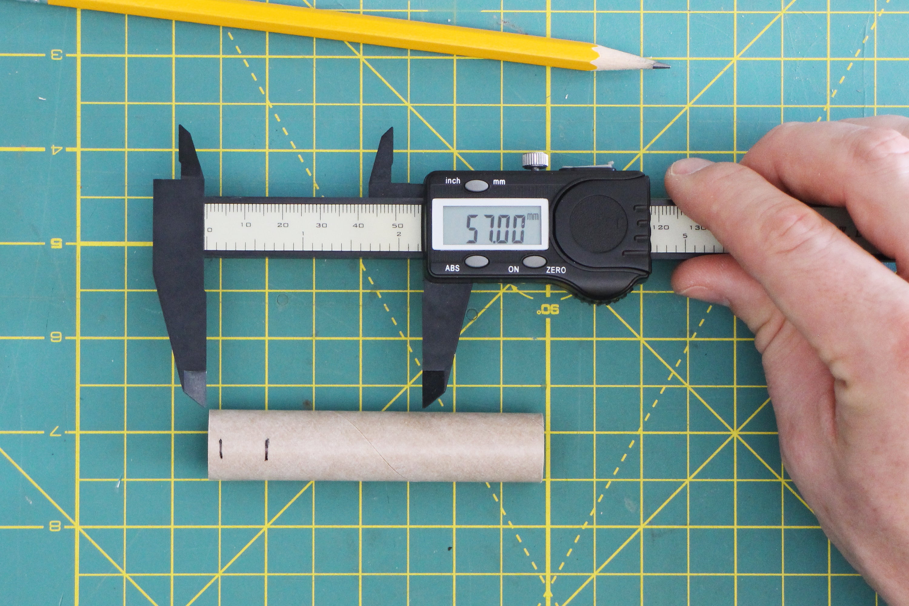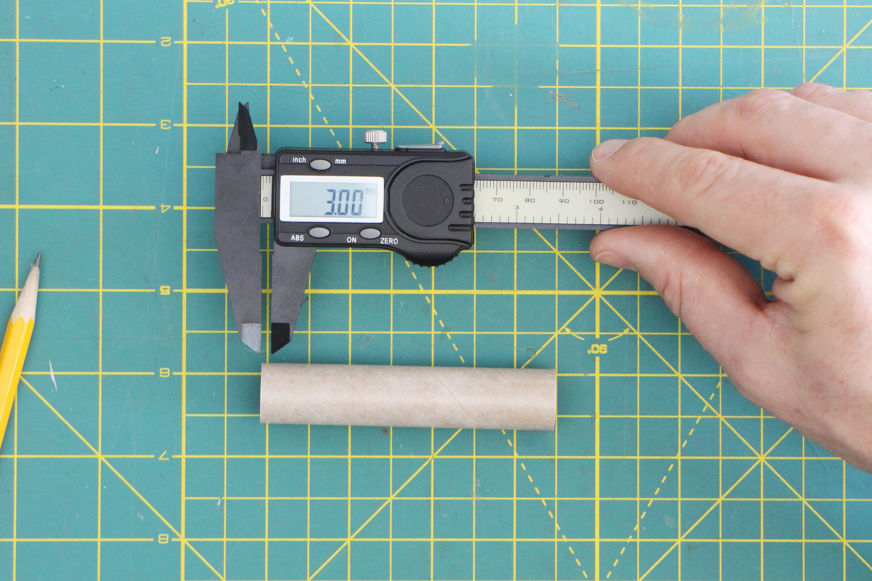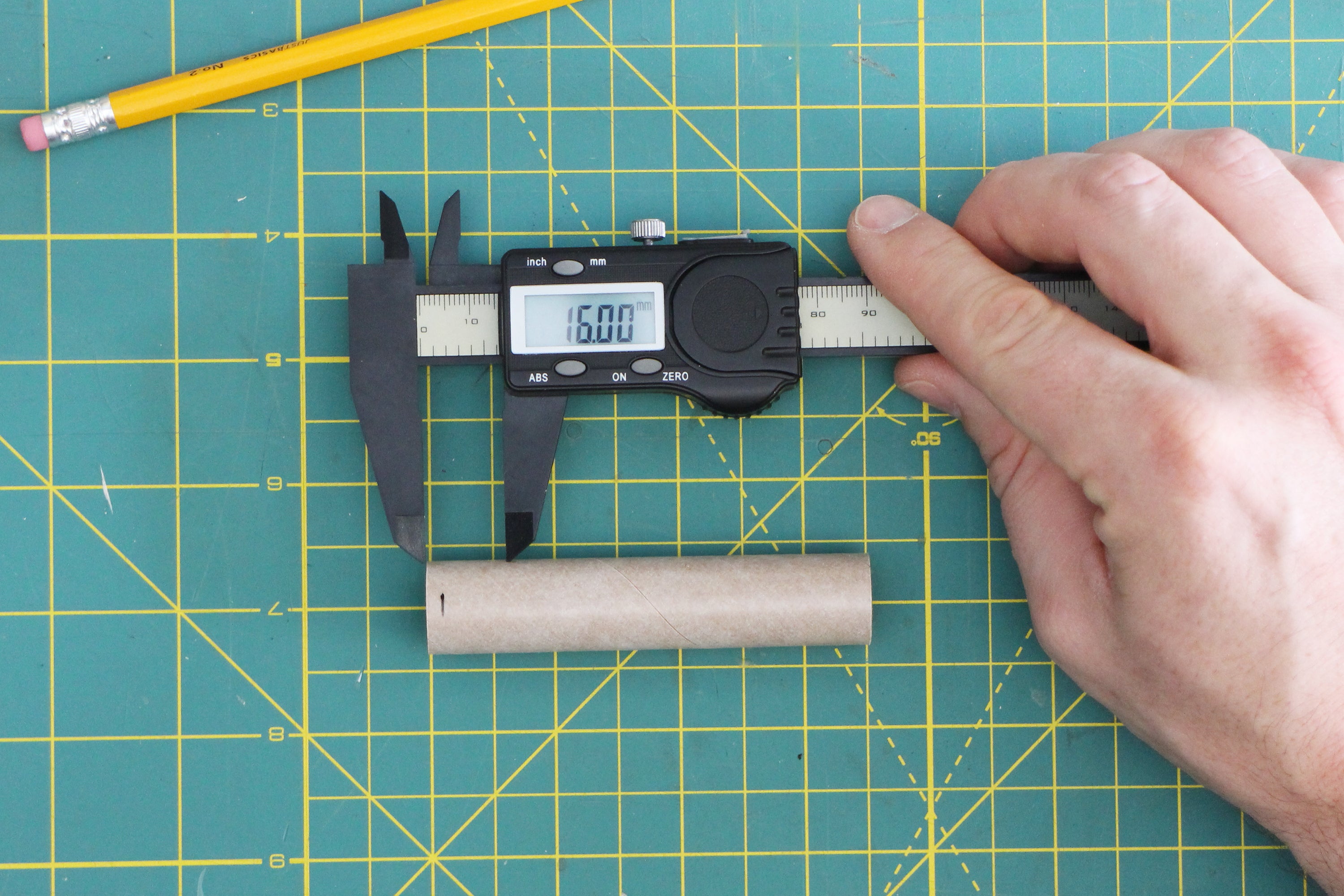 For the small increments we'll be working in, it's easiest to use metric millimeters, as counting in whole numbers is much easier than imperial fractions. All digital calipers have a units button that will switch between imperial and metric. To do this, turn your calipers on, push them completely closed, hit the 'zero' button, and switch to metric. You're good to go!